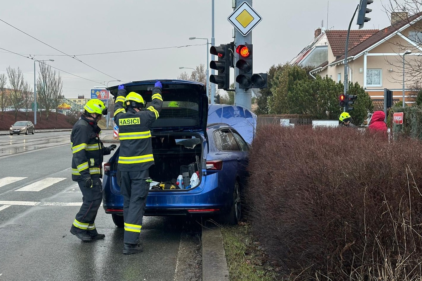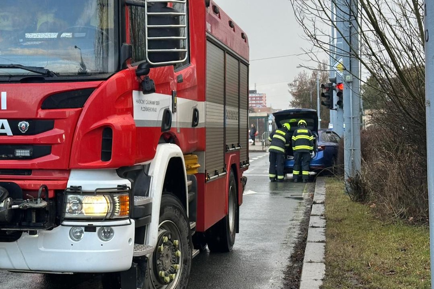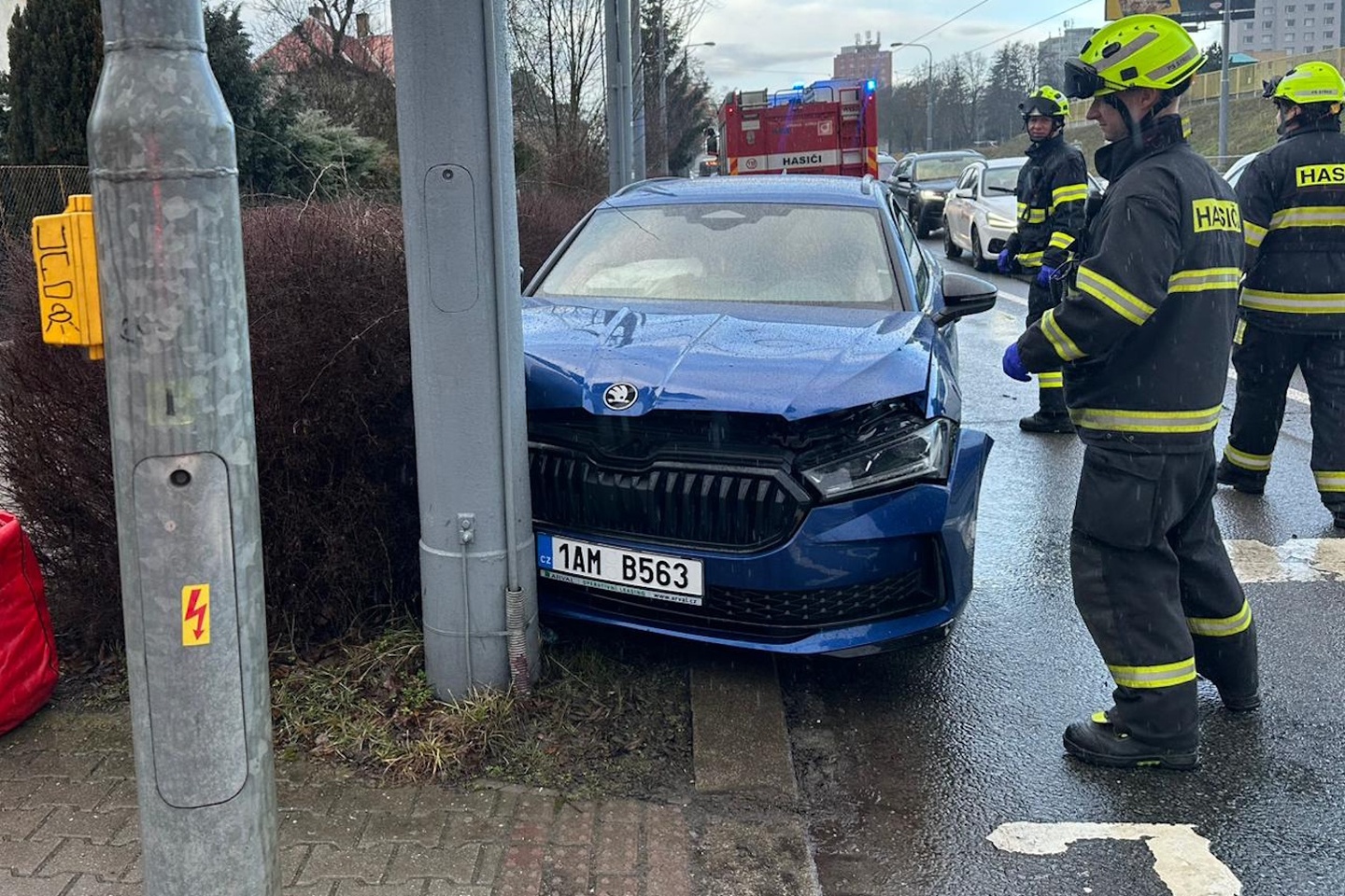 Dnes ráno po osmé hodině došlo na Vejprnické třídě v Plzni k dopravní nehodě, během které osobní vozidlo značky Škoda narazilo do sloupu.