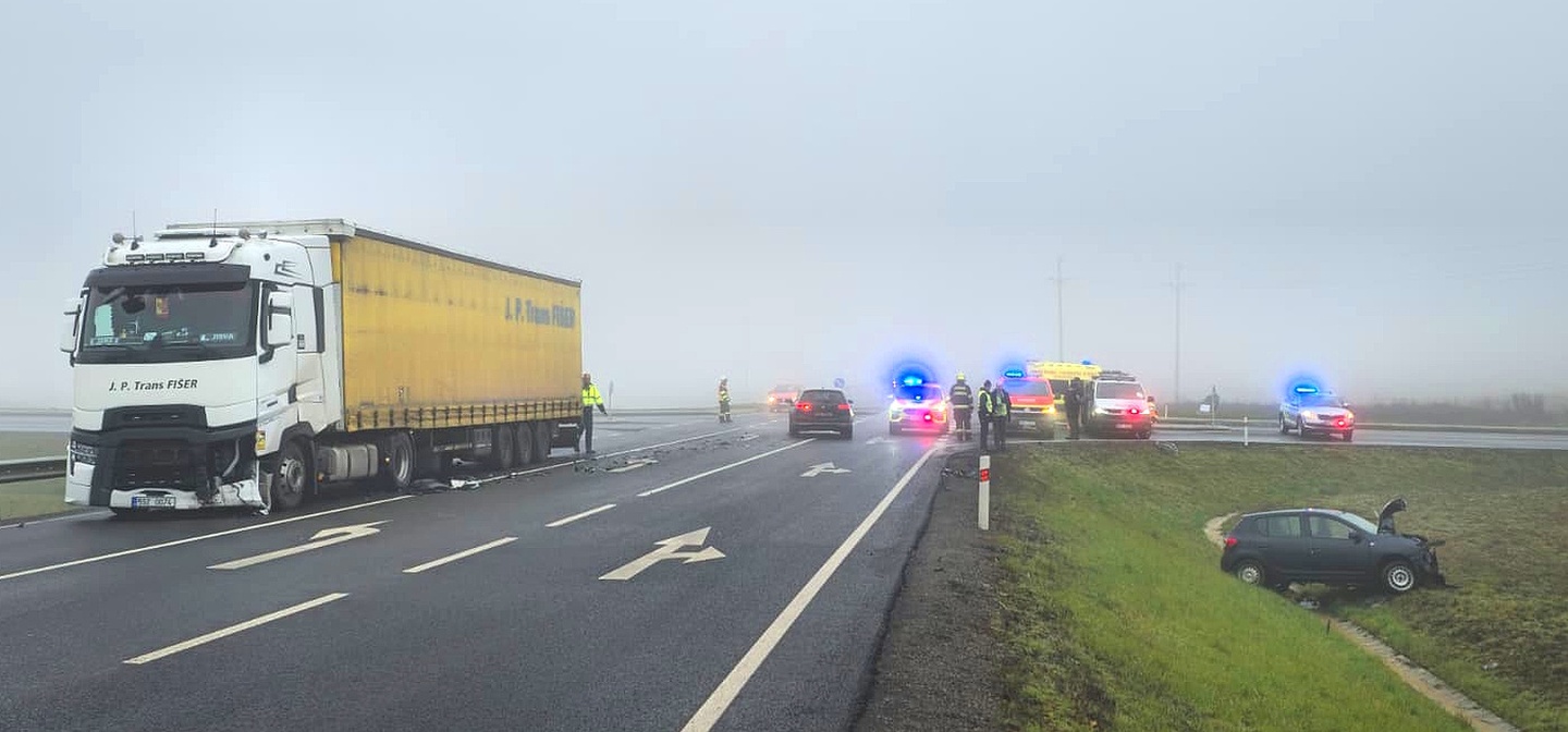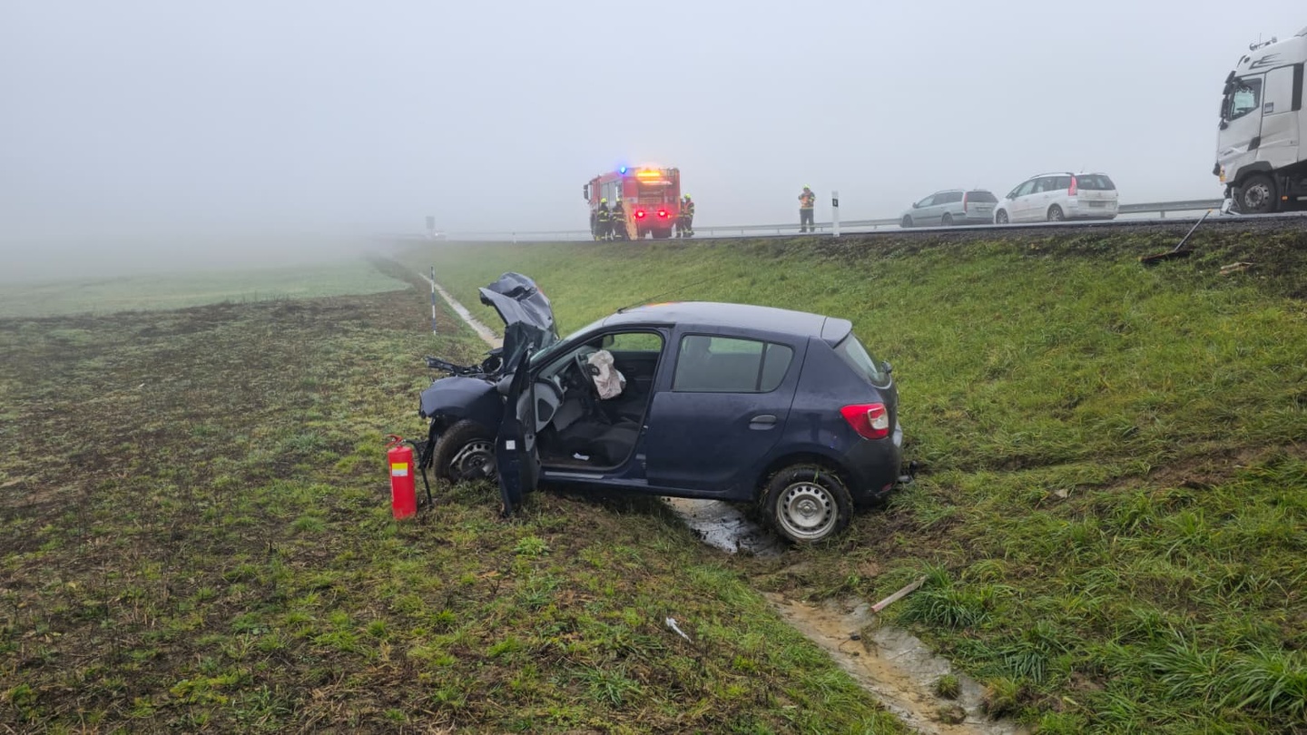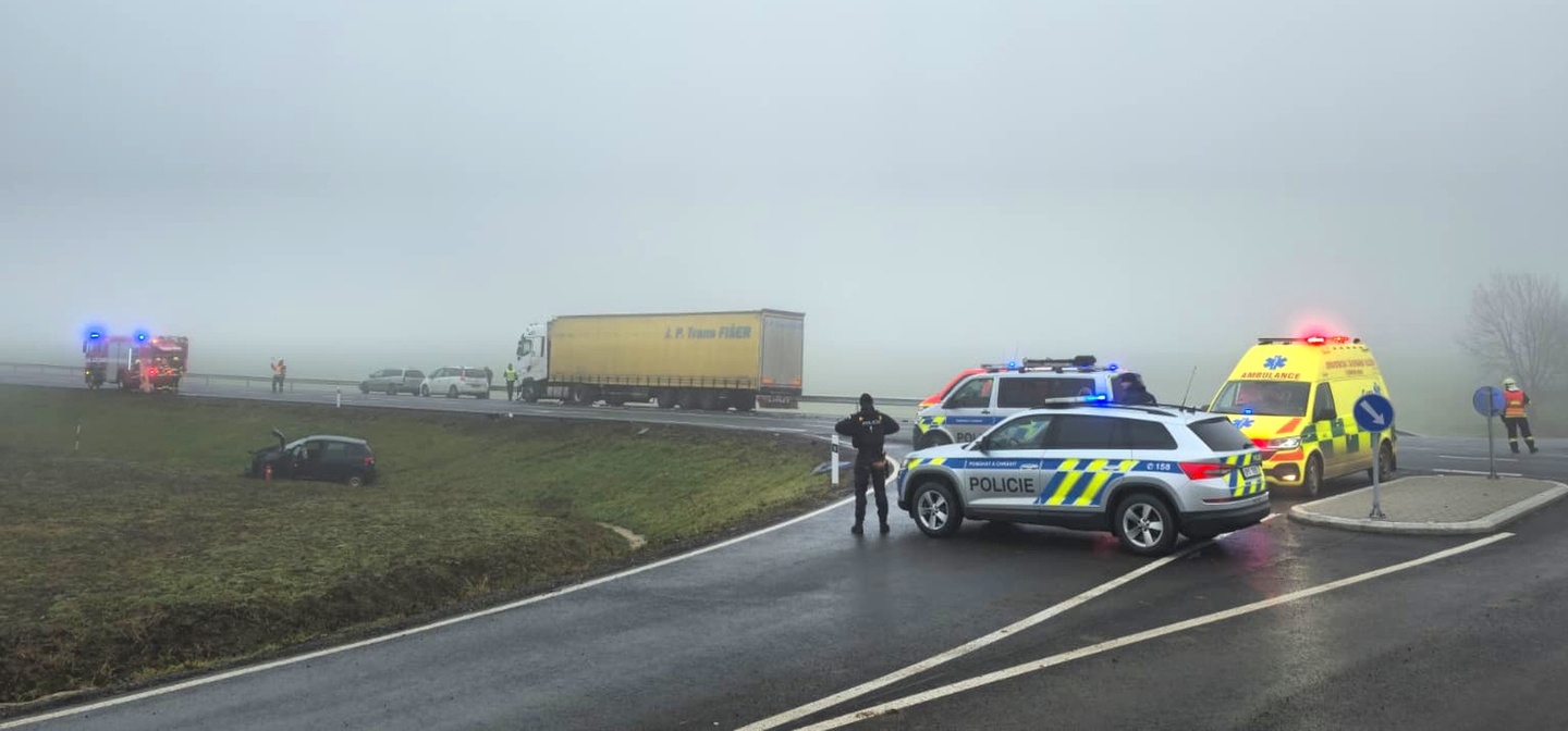 Z místa bylo hlášeno vážné zranění staršího řidiče osobního vozu, kterého po nehodě z auta vyprostili svědci, takže byl povolán i vrtulník letecké záchranné služby. Ten byl však během letu kvůli husté mlze odvolán.