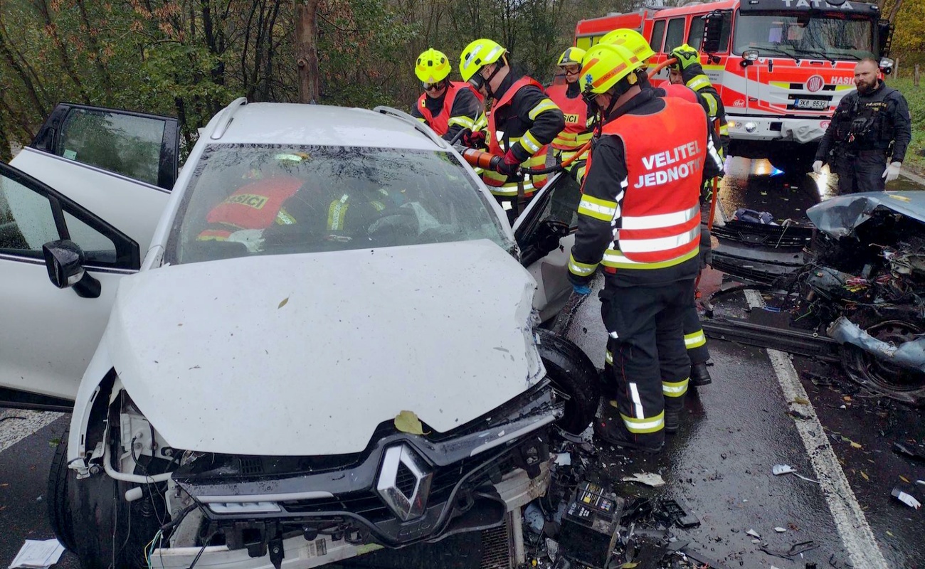 Hasiči zajistili prostor nehody, provedli protipožární opatření a pomocí hydraulických nástrojů vyprostili zraněného muže a ženu z havarovaného Renaultu. Ty si následně převzali do péče záchranáři.