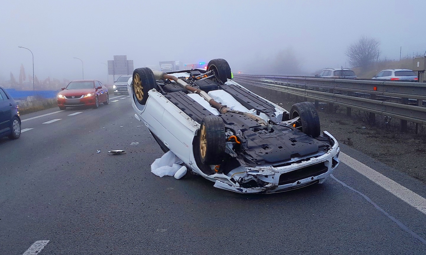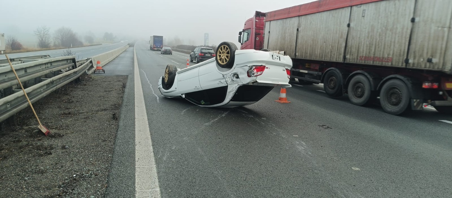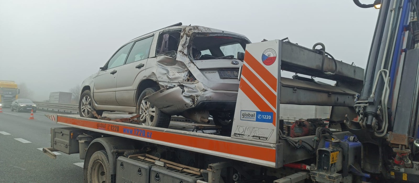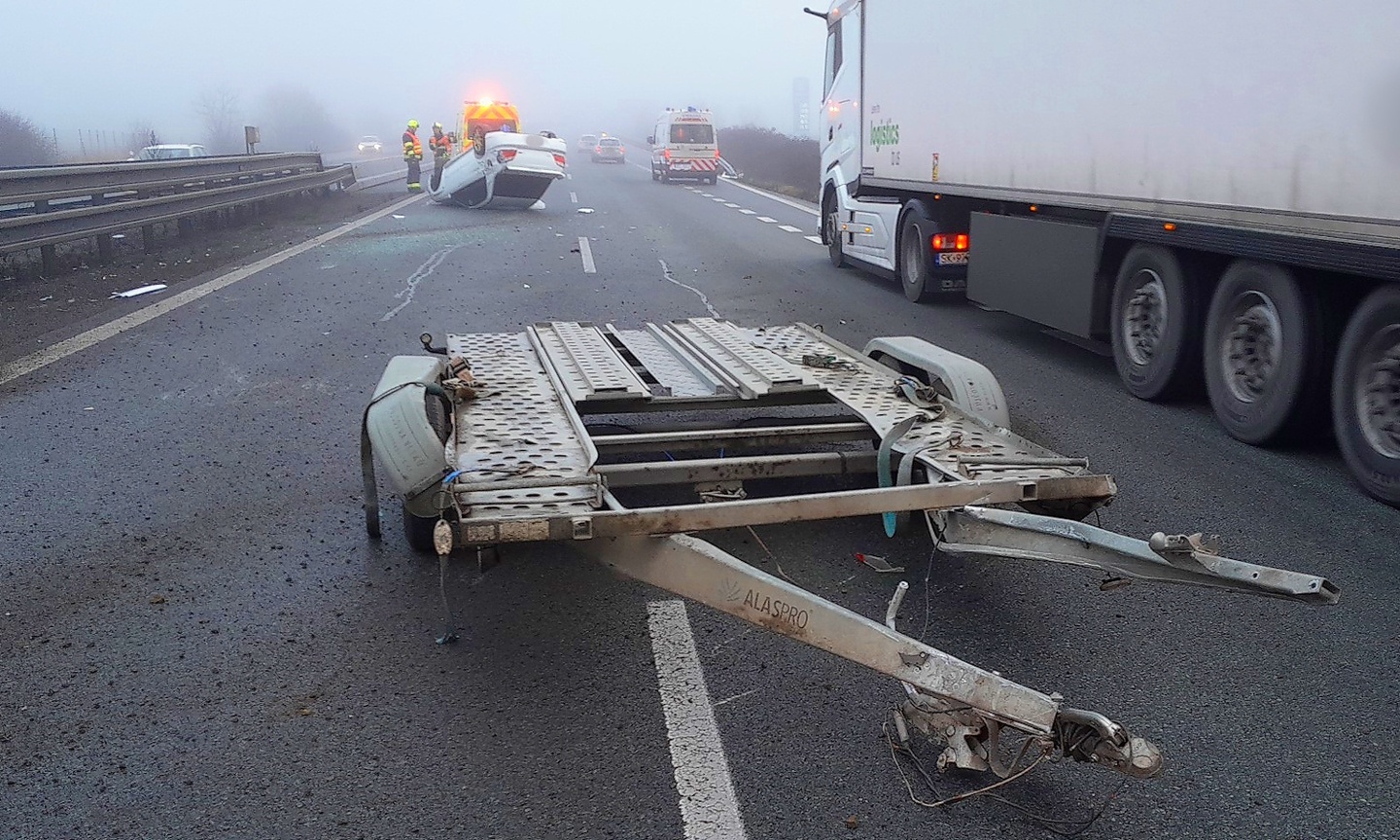 "Řidič vozidla značky Subaru Forester, narozený v roce 2000, který táhl přívěs s dalším vozidlem stejné značky, zřejmě nepřizpůsobil rychlost jízdy. V důsledku toho se souprava rozkývala a následně došlo k odpojení přívěsu s převáženým vozidlem. Naložené vozidlo skončilo na střeše, přívěs zůstal v levém jízdním pruhu a tažné vozidlo havarovalo vpravo na boku mimo těleso dálnice.