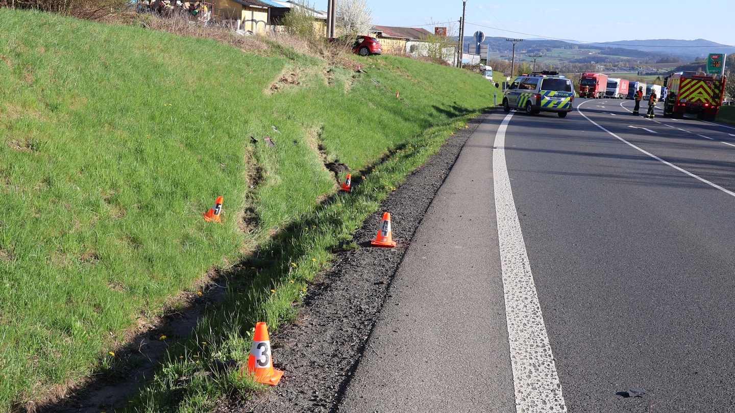 Včera kolem páté hodiny odpoledne došlo na silnici I/26 u tržnice nedaleko hraničního přechodu Folmava k vážné dopravní nehodě, během které osobní vozidlo značky Renault přejelo do protisměru a následně vyjelo do svahu, kde čelně narazilo do betonového sloupu elektrického vedení.