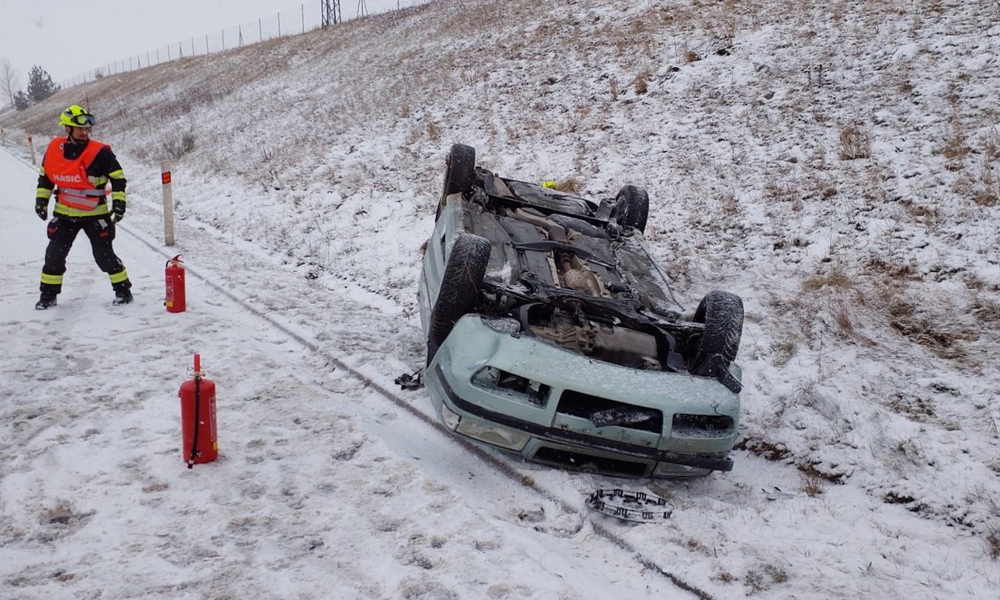 "Pozemní komunikace v celém Karlovarském kraji jsou pokryté sněhem, což výrazně komplikuje dopravu po celém regionu. Od ranních hodin jsme řešili na tři desítky dopravních nehod, naštěstí zatím všechny bez vážného zranění. Ve většině případů se jedná o dopravní nehody, že vozidlo sjelo mimo pozemní komunikaci, kde se případně převrátilo na střechu.