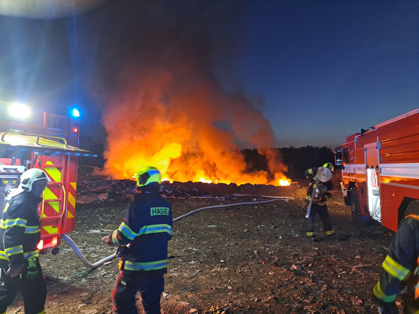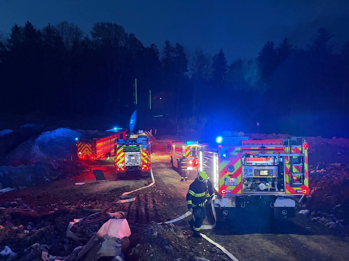 V noci ze soboty na neděli před třetí hodinou vyjíždělo několik jednotek profesionálních a dobrovolných hasičů na skládku Vysoká u Dobřan, kde došlo k požáru odpadu na překládacím místě.