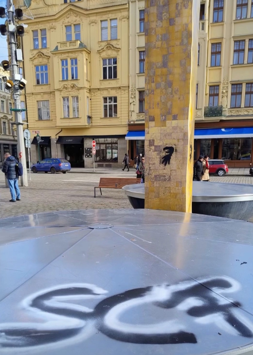 Na plzeňském náměstí Republiky posprejovali fanoušci německého Freiburgu kašny, sloupy i odpadkové koše logy a barvami svého klubu. Na místo vyrazili strážníci i policisté a okamžitě začali pátrat po pachatelích. V rámci spolupráce se jim podařilo jednoho z podezřelých mužů zajistit ještě na náměstí.