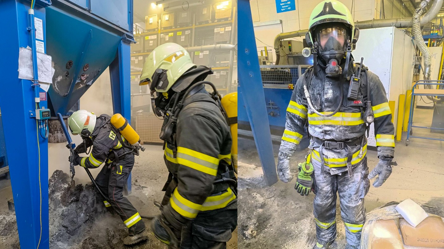 Ukázalo se, že hoří filtr v průmyslovém stroji, načež hasiči okamžitě zahájili hasební práce. "Na prvotní zásah byl použit hasicí přístroj z důvodu reakce vody a hořícího prachu," uvedli hasiči.