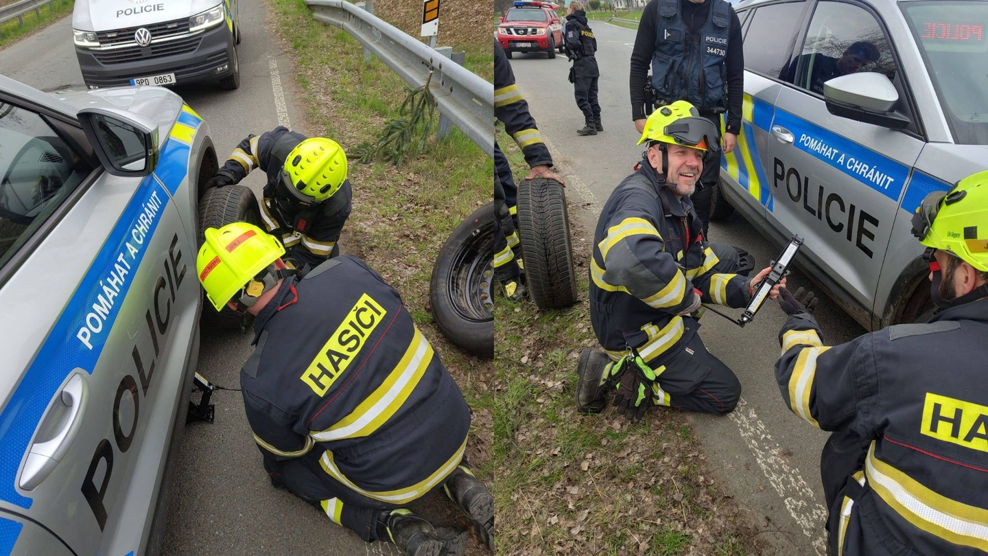 Během čekání na příjezd dopravních policistů si však hasiči všimli další komplikace, která s nehodou přímo nesouvisela. Policistům z obvodního oddělení totiž na služebním vozidle ucházela přední pneumatika. "S námi u nehody zasahovali také policisté z Nýrska. Když jsme zjistili, že kolegové od policie mají na svém služebním vozidle ušlou přední pneumatiku, samozřejmě padly menší vtípky na jejich účet, které ale vzali s humorem," popsali nám hasiči.