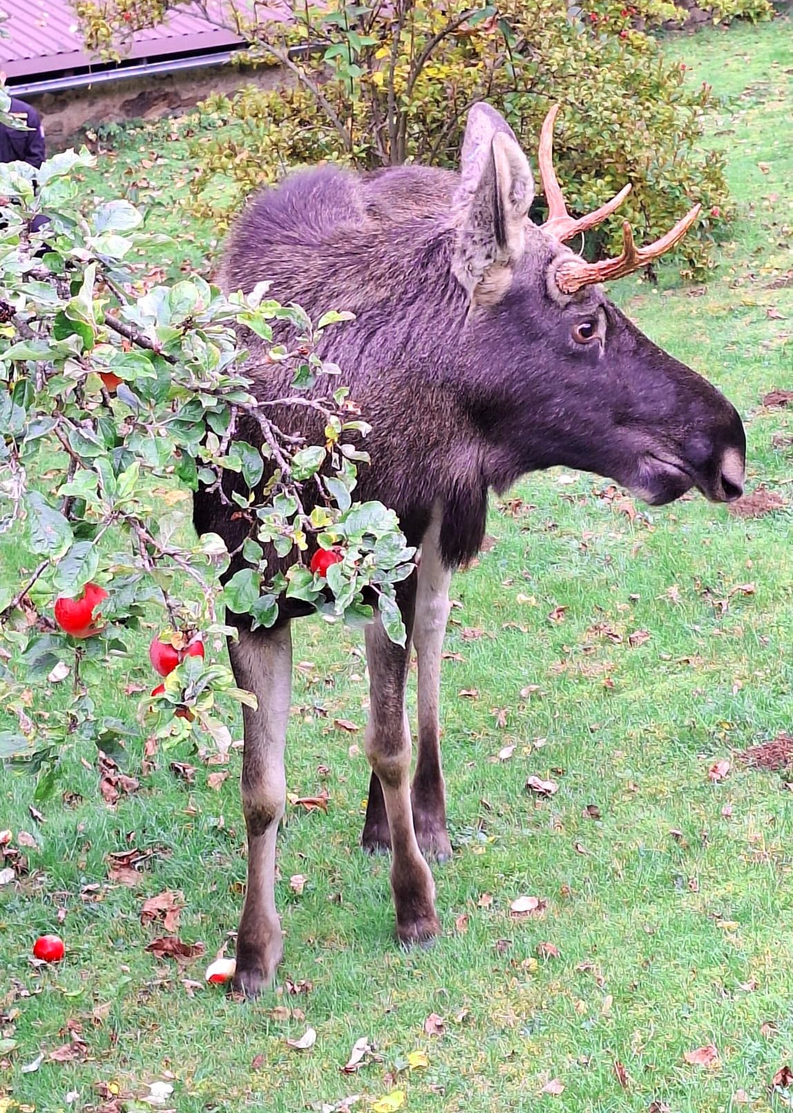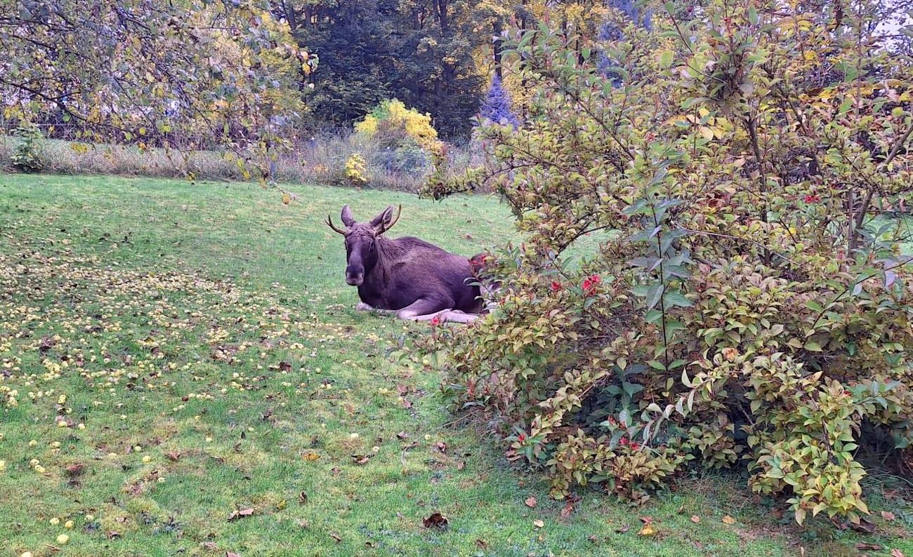 "Když kolegové z obvodního oddělení Nýrsko přijeli na místo, los ležel spokojeně pod jabloní a pojídal jablka. Na hlídku zpočátku vůbec nereagoval, ale když se zvedl a policisty zaregistroval, začal se již chovat jako divoké zvíře a kolegy po zahradě trošku prohnal.