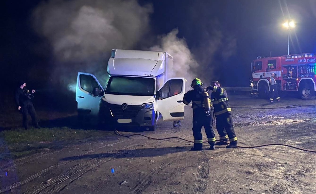 V noci na dnešek kolem půlnoci vyjelo několik jednotek hasičů k nahlášenému požáru plachtové dodávky na křižovatce u Dolanského mostu. Po příjezdu na místo hasiči zjistili, že dodávka hoří jak na korbě v zadní části, tak i v kabině.