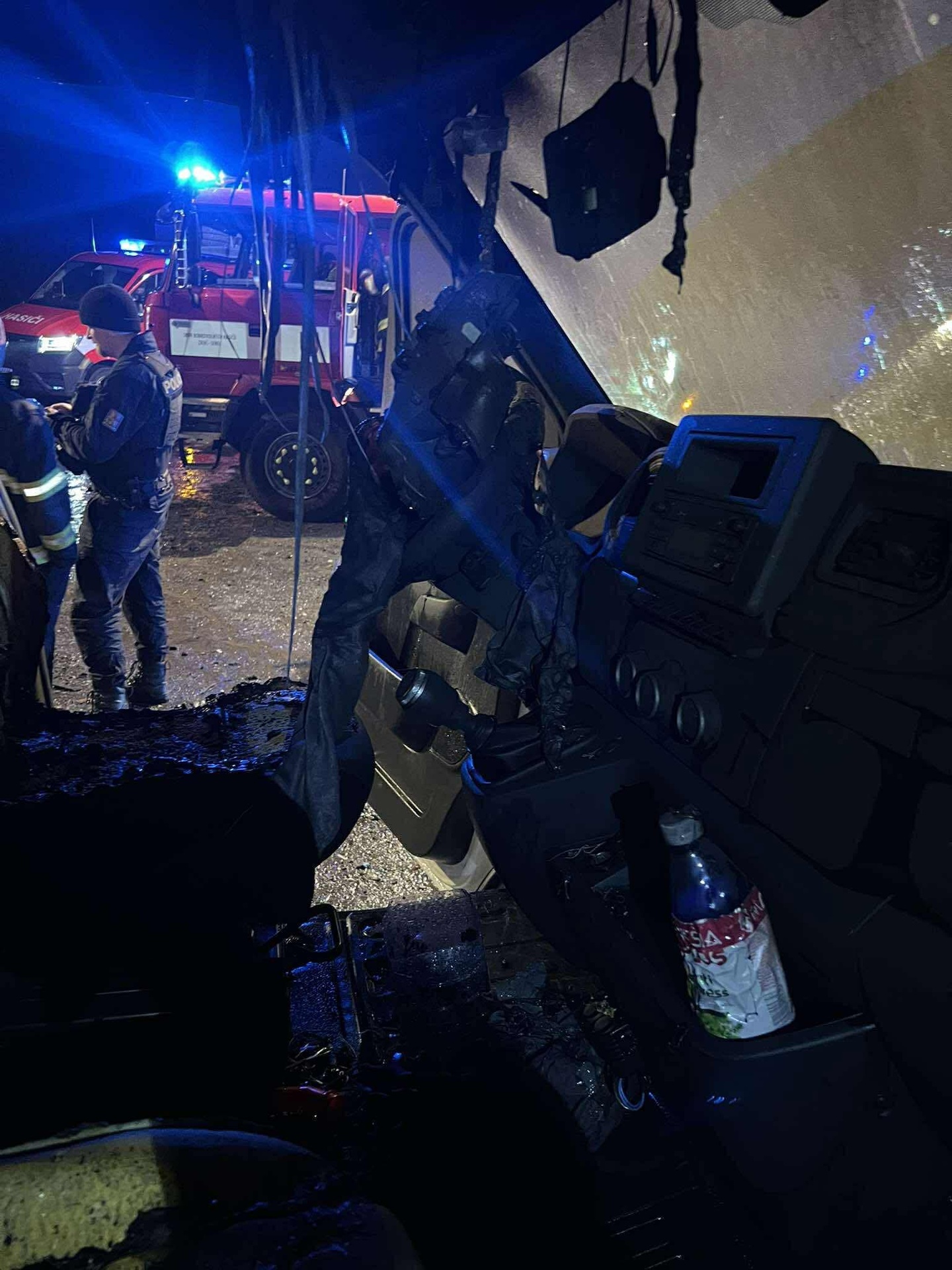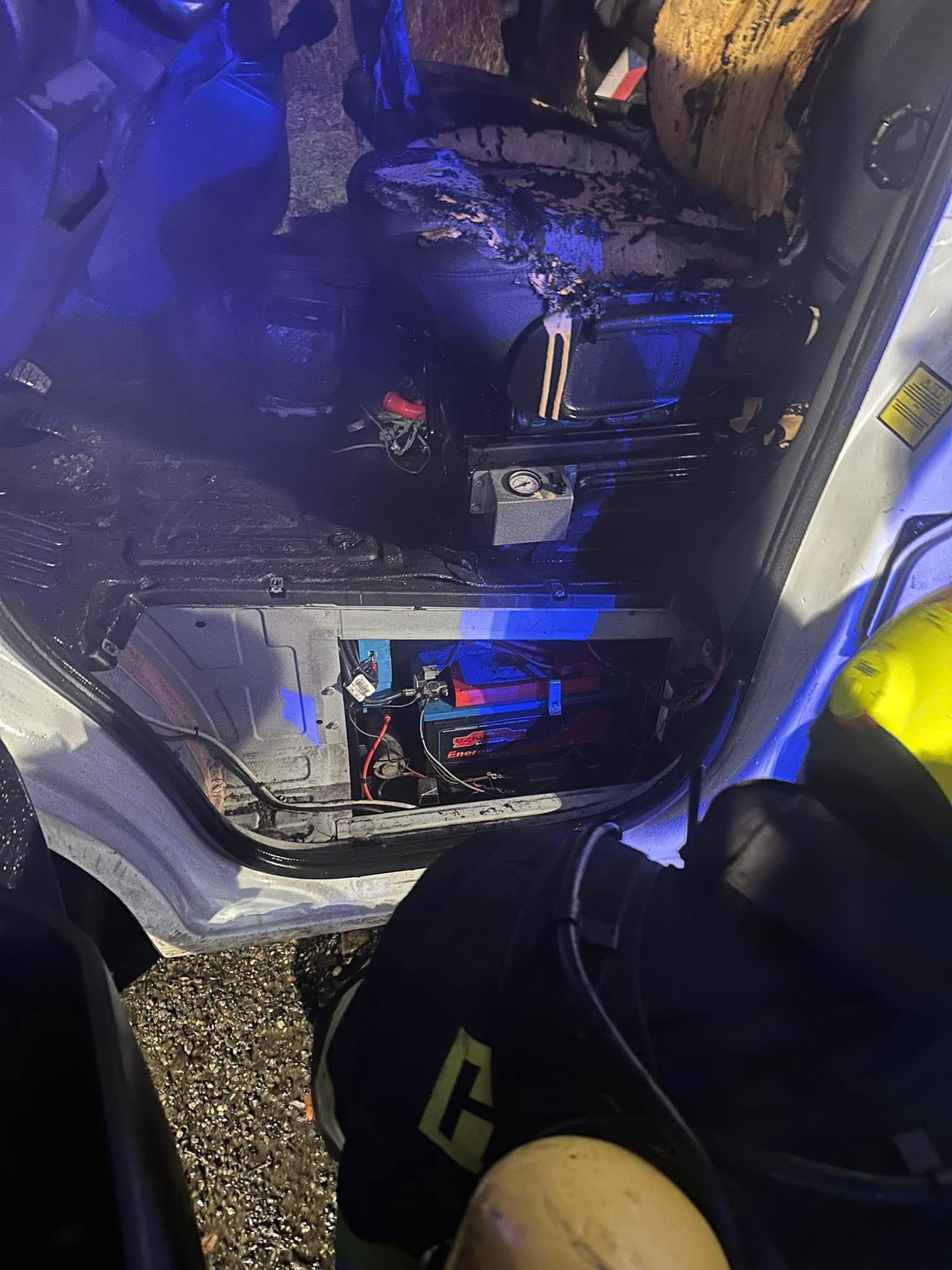 "Mohu potvrdit, že skutečně došlo k požáru odstaveného vozidla tovární značky Renault Master nedaleko Dolanského mostu u Chrástu. Po uhašení požáru byl na místo přivolán kriminalistický výjezd a vyšetřovatel hasičského záchranného sboru, kteří zjistili možné podezření na úmyslné zapálení. Proto byl na místo také povolán policejní psovod se speciálně vycvičeným psem na vyhledávání akcelerantů hoření.