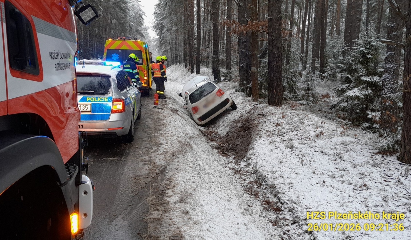 Včera krátce po deváté hodině dopoledne vyjížděly složky integrovaného záchranného systému na silnici vedoucí z Plzně do Záluží, kde osobní vozidlo značky Opel vyjelo ze silnice a skončilo v silničním příkopu.