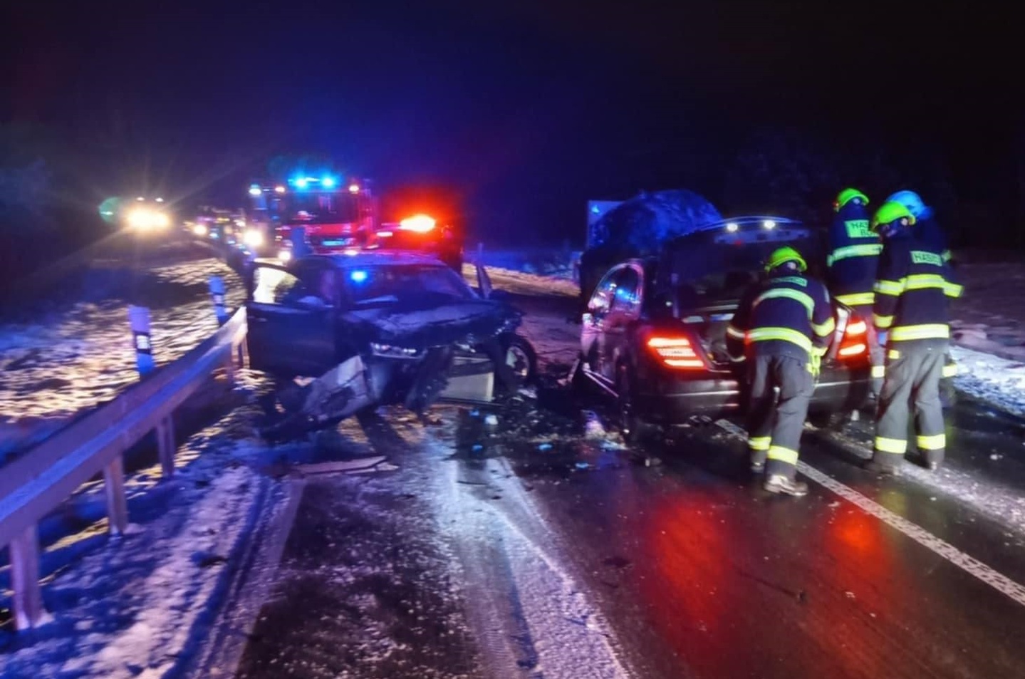 "Šedesátiletý řidič jel s vozidlem značky Mercedes ve směru od Nové Hospody na Čečkovice. Podle dosud zjištěných skutečností uvedl vozidlo do smyku a přejel do protisměru, kde se čelně střetl s protijedoucím vozidlem značky Škoda Octavia, které řídila sedmapadesátiletá řidička. Ta se následně vlivem nárazu střetla s vozidlem se svodidly na pravé straně komunikace.