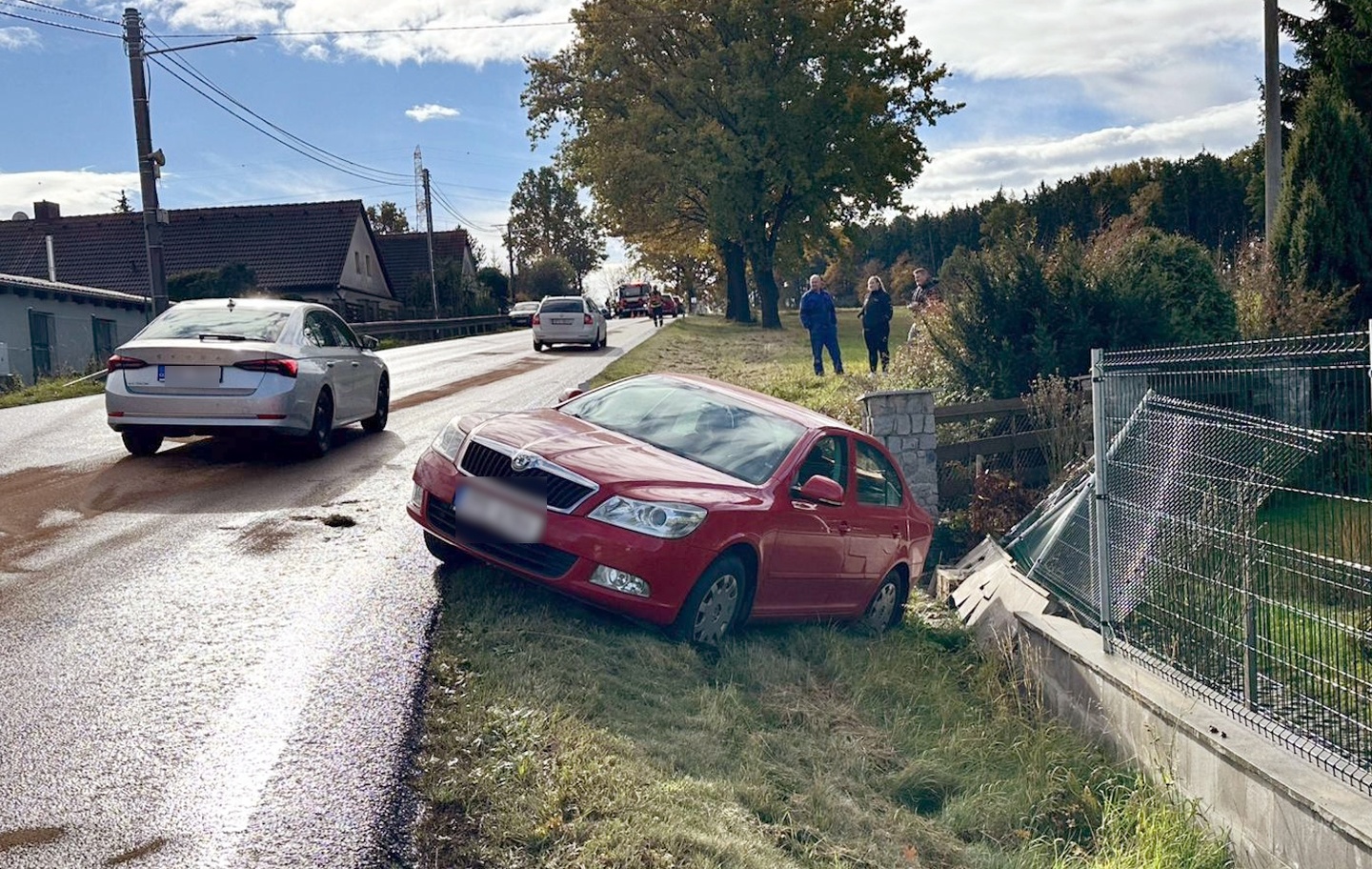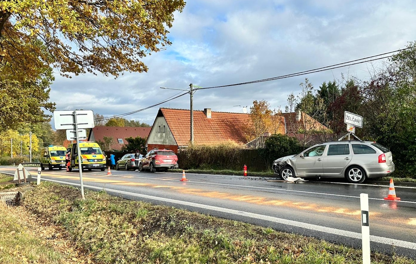 Ke druhé nehodě došlo v Želčanech, což je malá vesnice, část Chválenic v okrese Plzeň - město. Zde došlo na silnici mastné od nafty k nehodě dokonce pěti osobních vozů, z nichž jeden prorazil plot jednoho z domů u silnice. Z místa bylo také hlášeno zranění, takže i k této nehodě vyjížděly všechny záchranné složky.