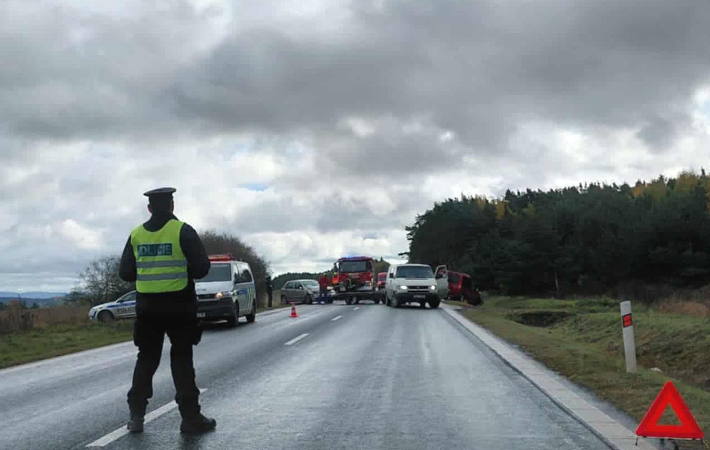 Protože musela být silnice zcela uzavřena policisté odklánějí dopravu přes objízdné trasy.