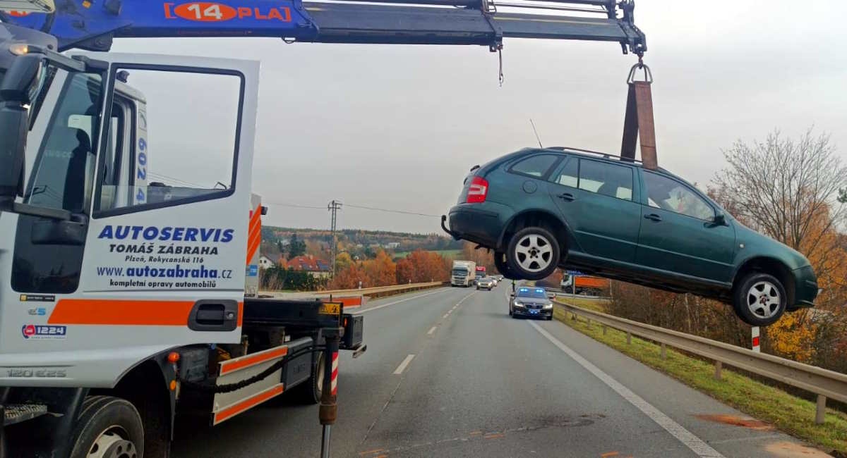 "Řidič narozený v roce 2007 jel s vozidlem tovární značky Škoda Fabia ve směru jízdy od Úněšova na Plzeň. Podle dosud zjištěných skutečností přejel do protisměru, kde narazil do levých svodidel, následně pokračoval v jízdě zpět do svého směru jízdy a narazil do pravých svodidel.