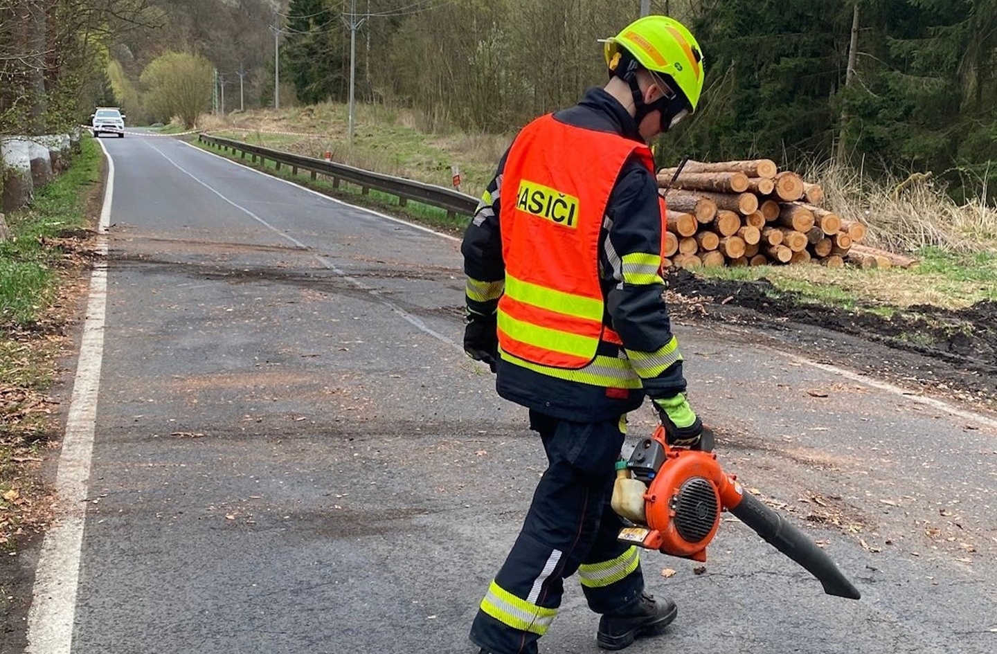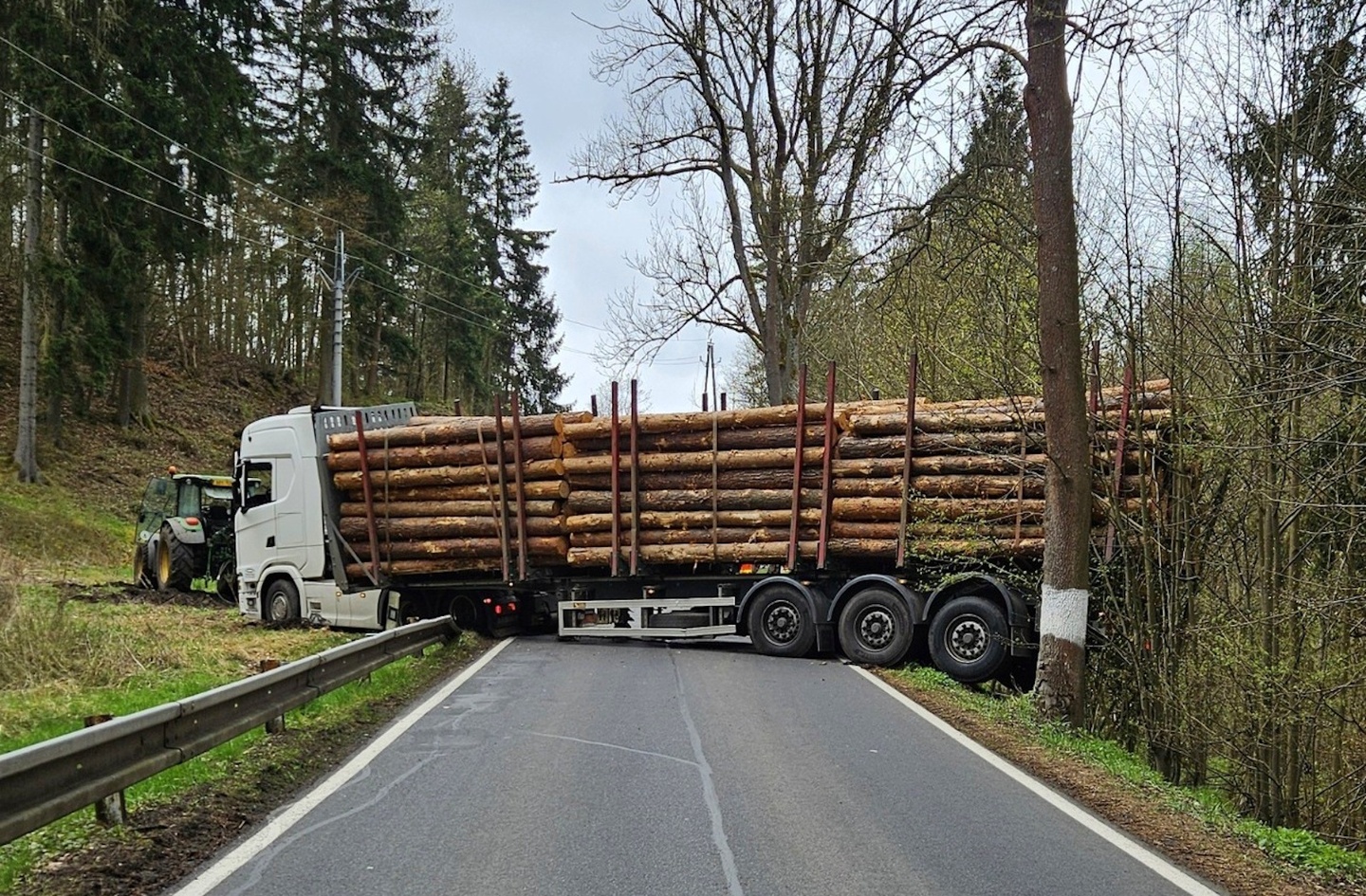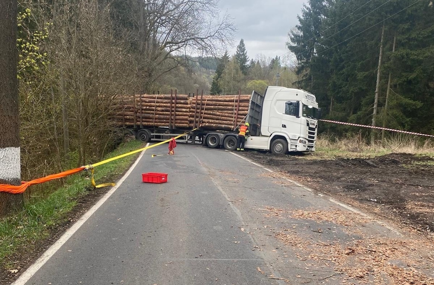 Včera krátce před jedenáctou hodinou dopoledne přijali policisté oznámení o kamionu s nákladem kulatin, který měl blokovat silnici mezi Radošovem a Velichovem na Karlovarsku.