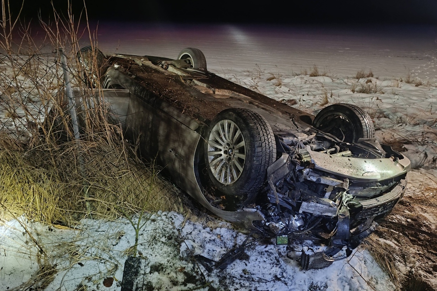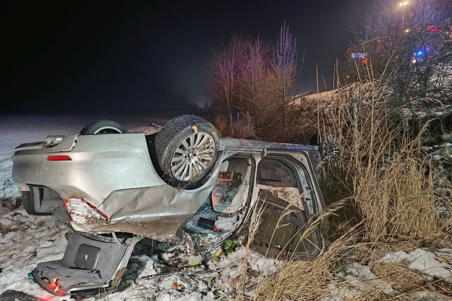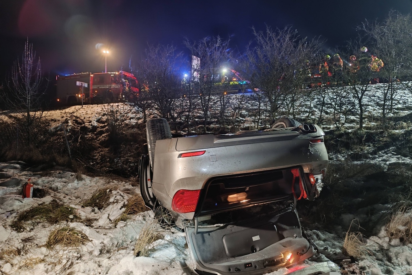 Včera večer krátce před sedmou hodinou došlo na 115. kilometru dálnice D5, tedy zhruba na úrovni Kladrub a ve směru z Rozvadova na Plzeň, k vážné dopravní nehodě, během které osobní vozidlo značky BMW vyletělo z dálnice a skončilo na střeše.
