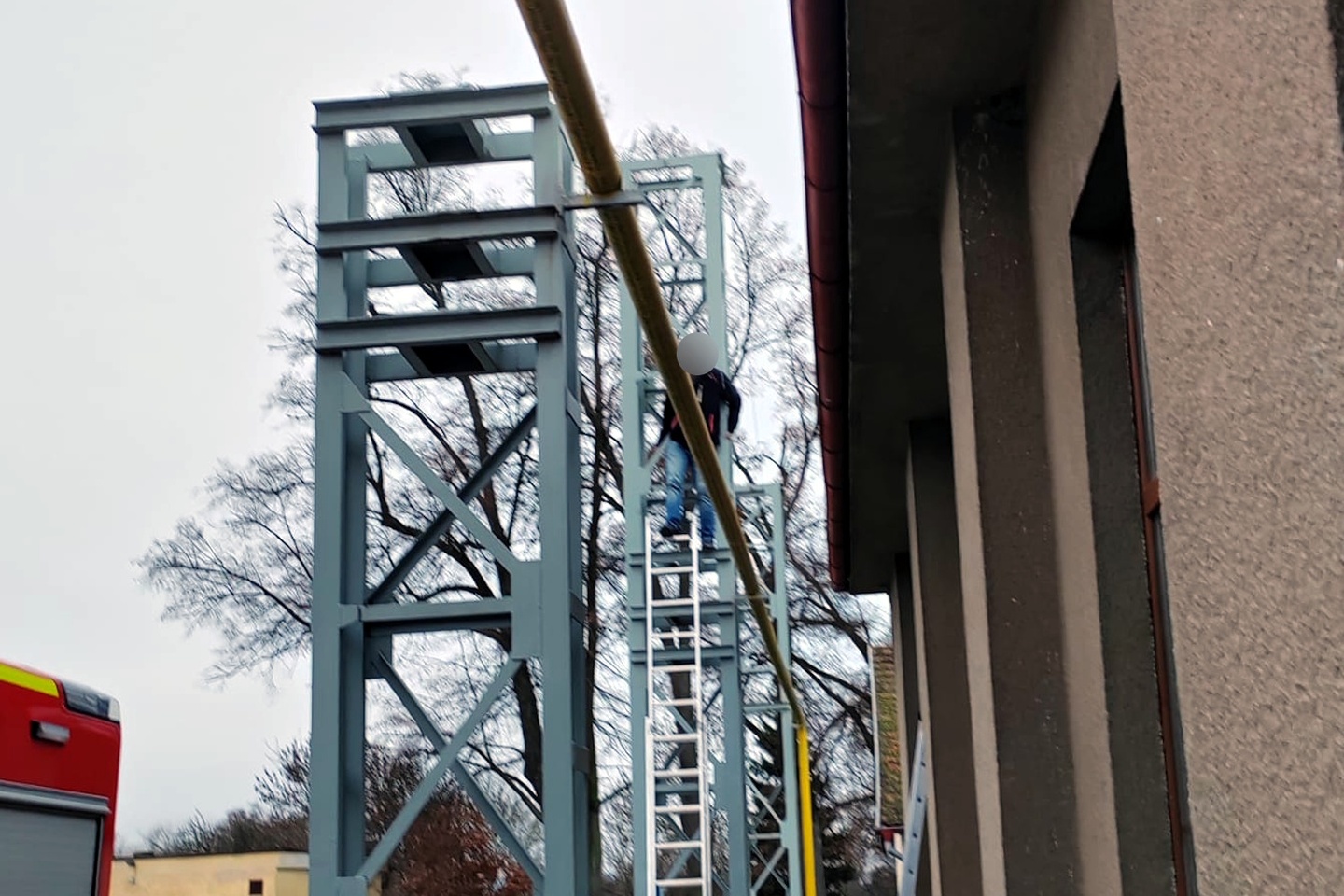 Dnes po osmé hodině ráno vyjížděli policisté a hasiči do Psychiatrické nemocnice v Dobřanech, kde jeden z pacientů vylezl na několik metrů vysokou kovovou konstrukci, nechtěl slézt a hrozilo tak nebezpečí jeho pádu.
