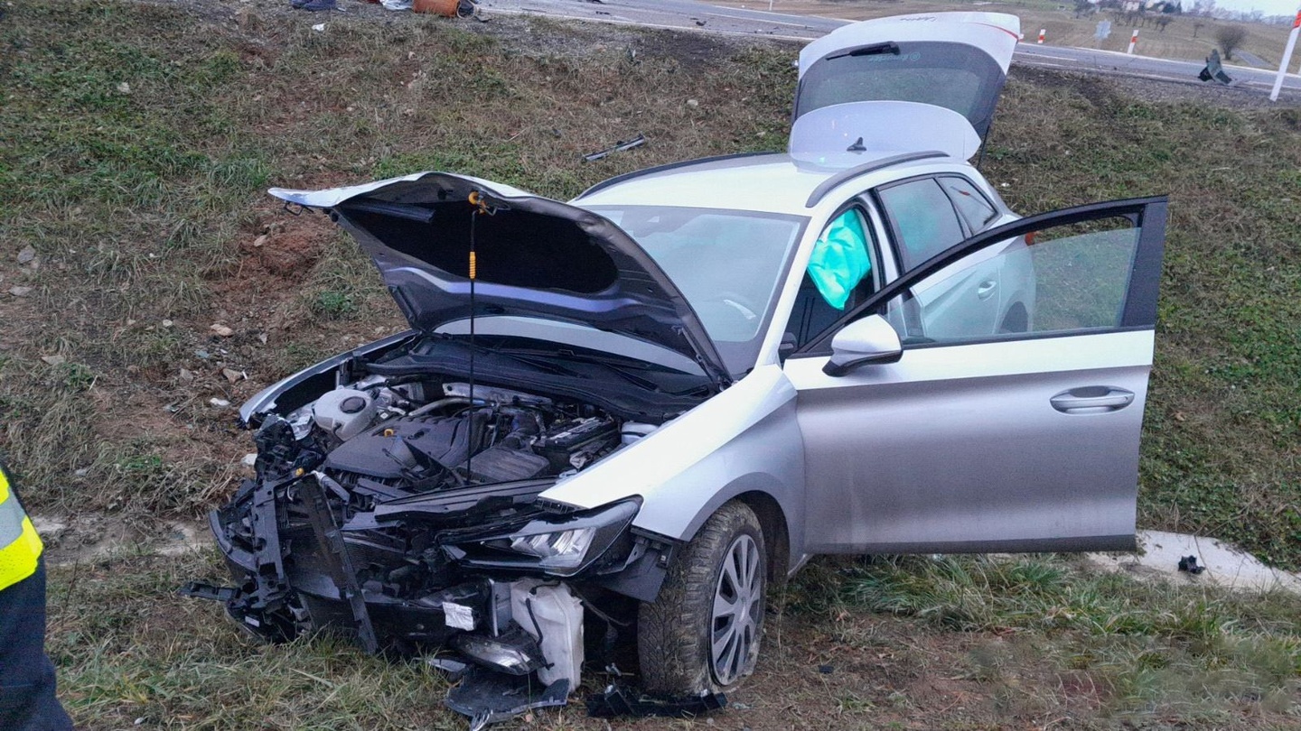 Vážná nehoda, jeden z vozů byl po střetu odražen mimo silnici