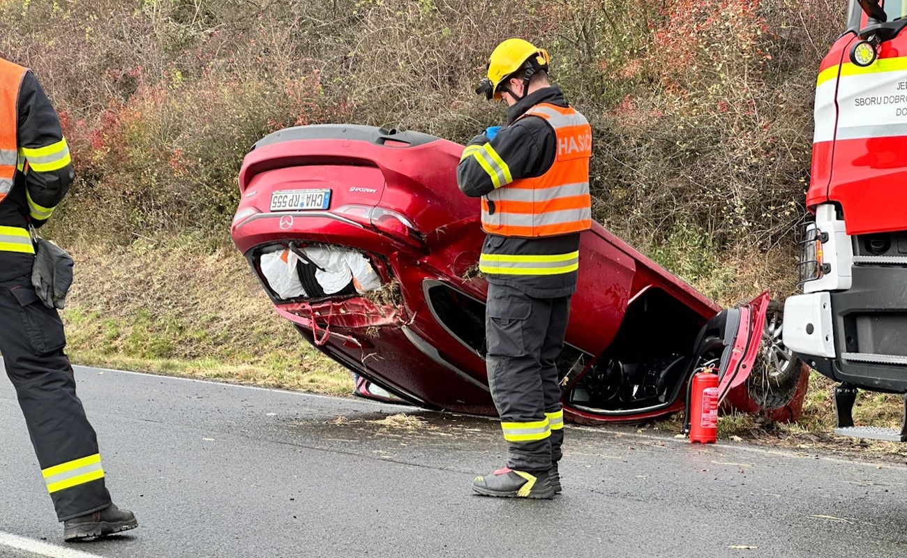 Dnes krátce před jedenáctou hodinou dopoledne došlo na silnici č. 180 mezi Dobřany a Vodním Újezdem k dopravní nehodě, během které osobní vozidlo značky Mazda vyjelo ze silnice a převrátilo se přes střechu. Z místa bylo hlášeno zranění osob, takže k nehodě okamžitě vyjely všechny záchranné složky.