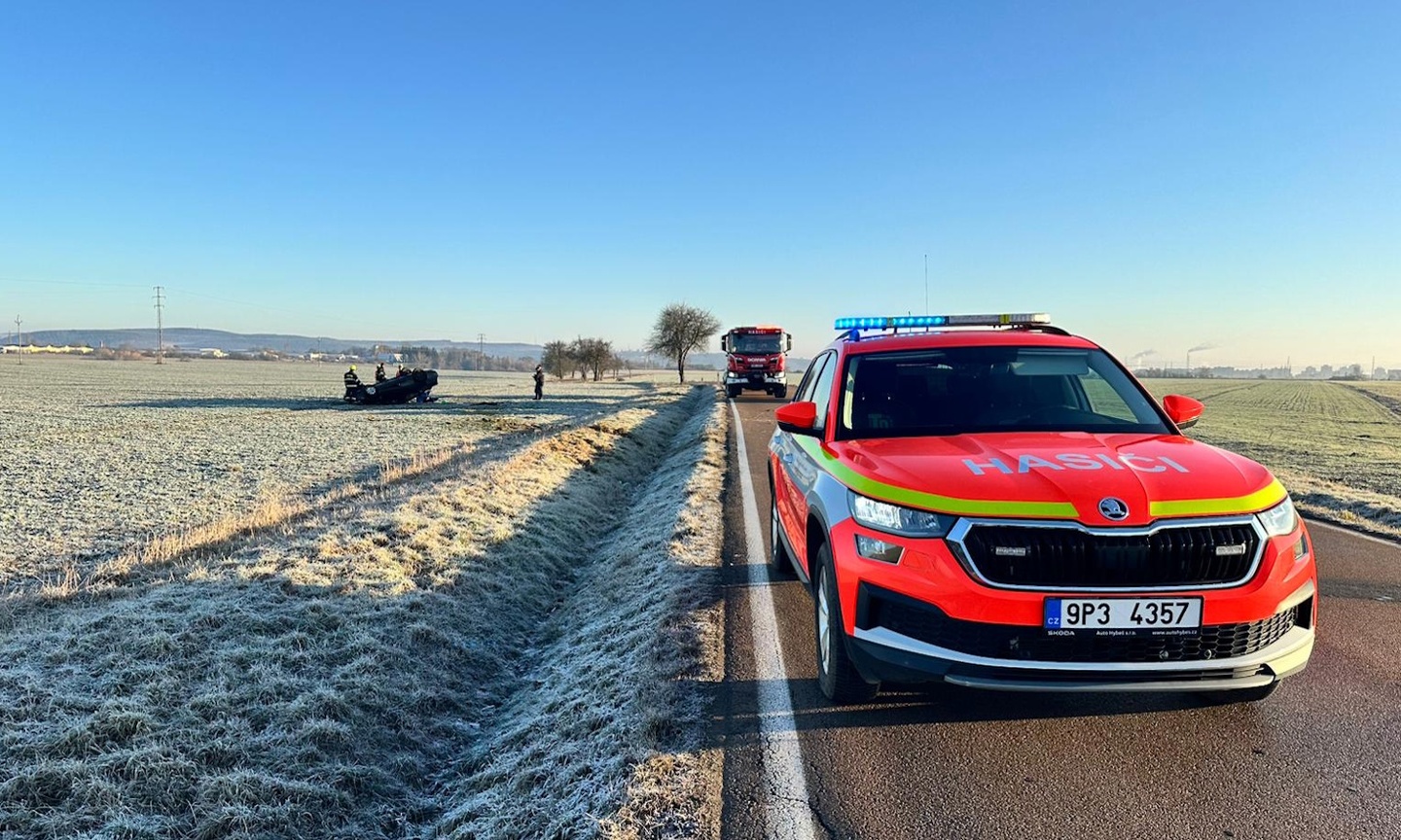 Dnes krátce před devátou hodinou dopoledne došlo na silnici mezi Křimicemi a Vejprnicemi k vážné dopravní nehodě, během které osobní vozidlo značky Škoda Octavia vyletělo ze silnice, narazilo do silničního příkopu a po odrazu od něj skončilo převrácené na střeše v poli.