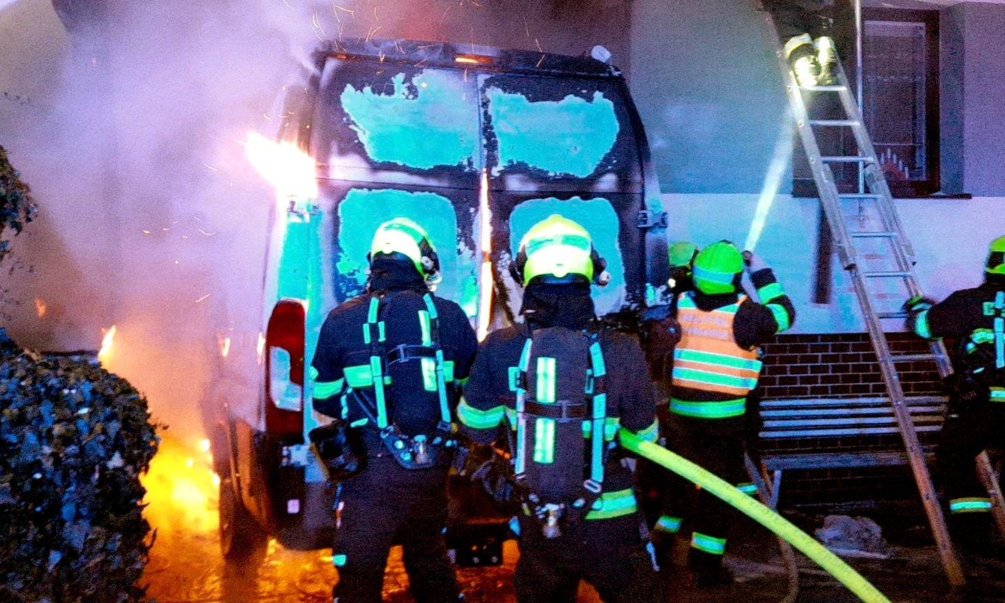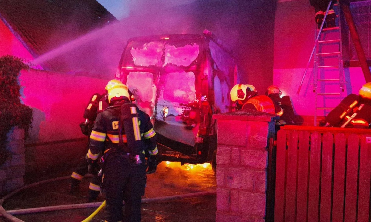 Dnes před pátou hodinou odpoledne došlo v Lidické ulici Tlučné k požáru obytné dodávky zaparkovaného pod přístřeškem u rodinného domu, bohužel oheň se velmi rychle rozšířil i na budovu.