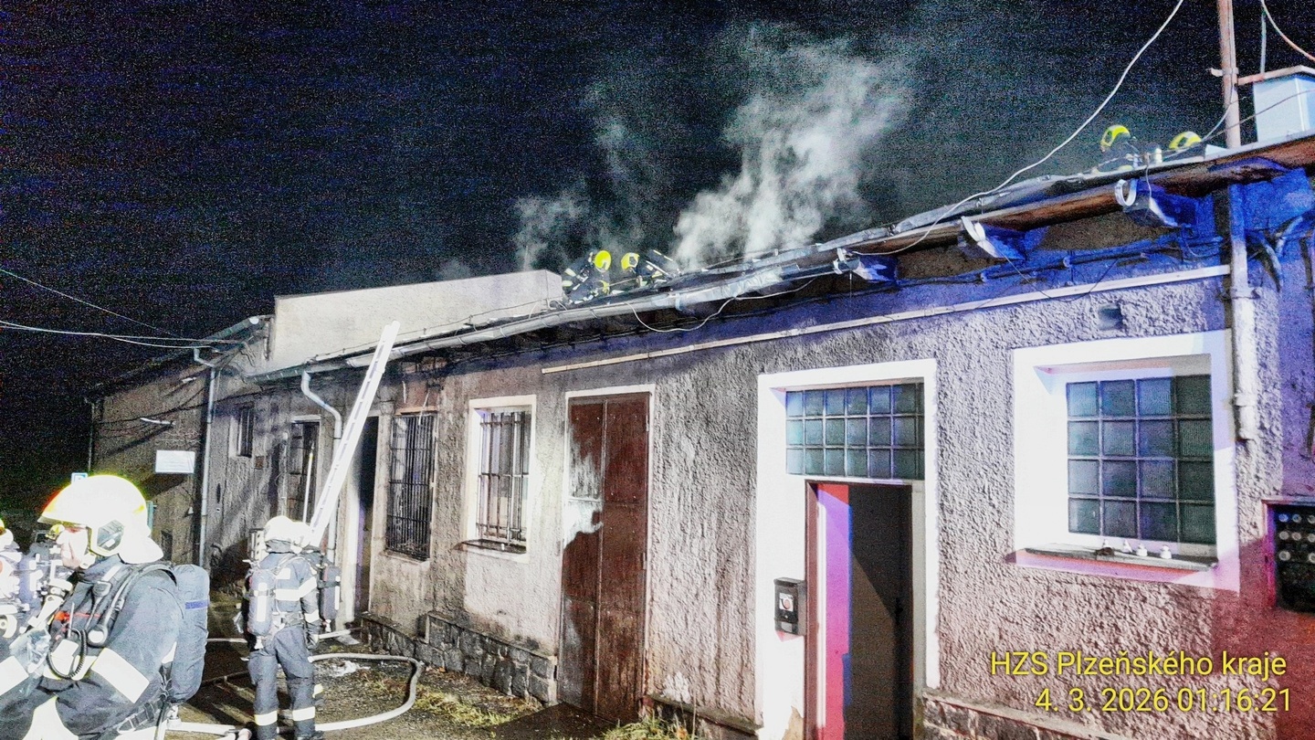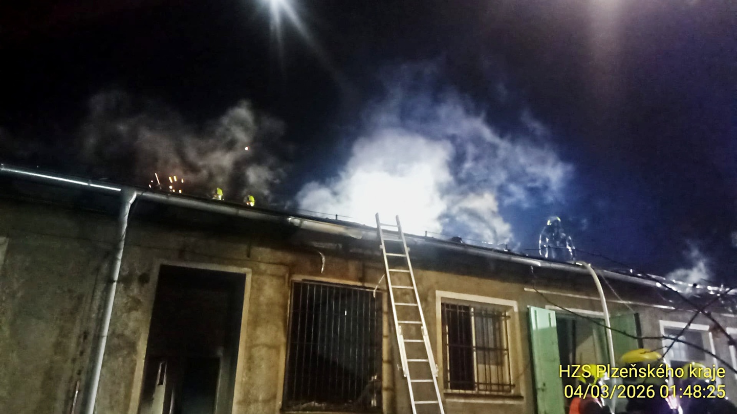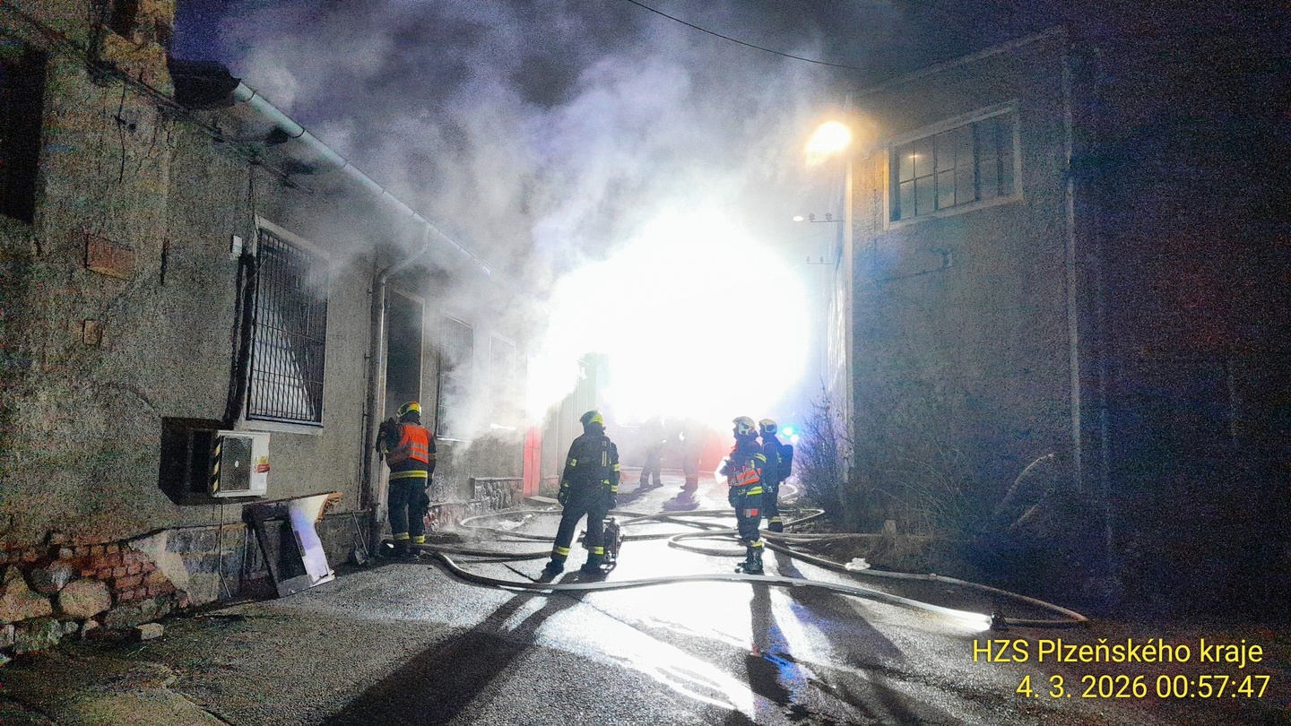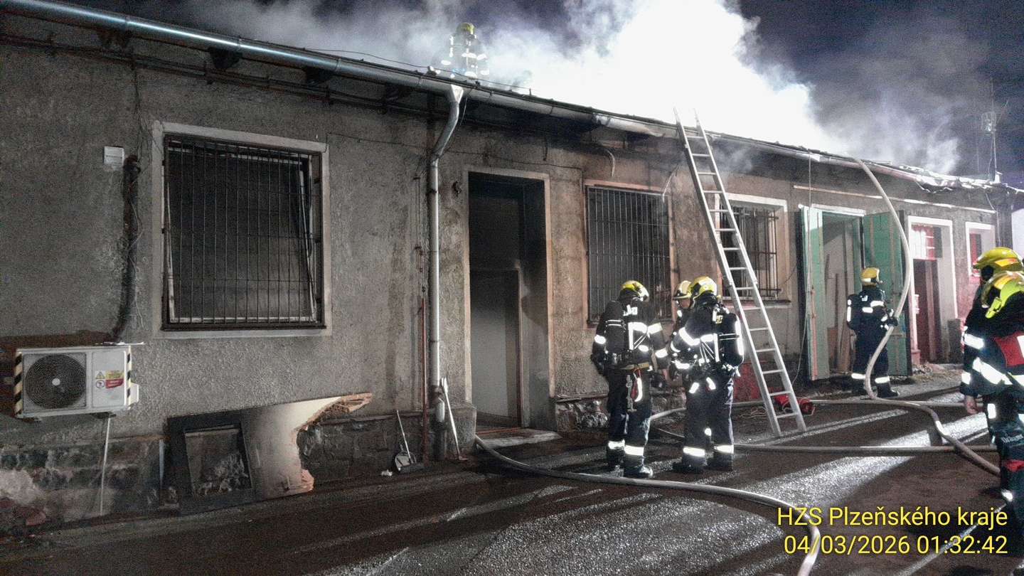 V noci na dnešek asi třicet minut po půlnoci došlo k rozsáhlému požáru ubytovny v Jateční ulici v Plzni. Na místo vyjelo jedenáct jednotek hasičů jak ze stanic Košutka a Střed, tak i hasiči správy železnic.