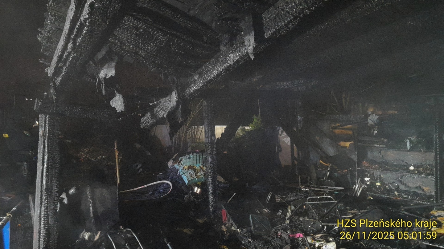 Na místě nyní probíhá dohašování. Příčina požáru a výše škody jsou v šetření.