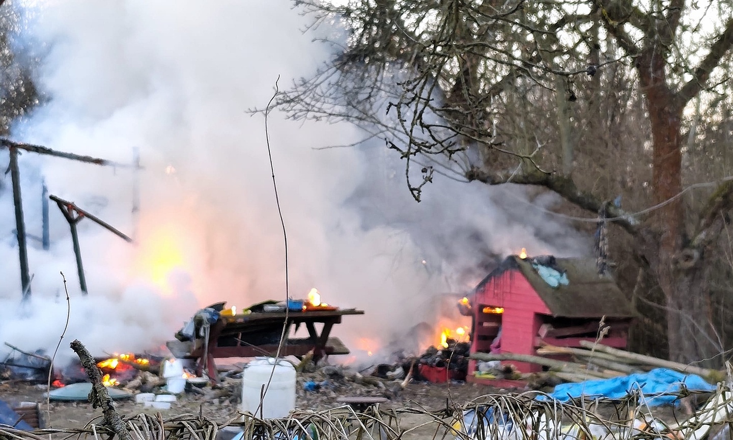 Požár jako první zaznamenal muž cvičící psy v ZKO Čechurov. "Slyšel jsem ránu a kousek za cvičákem se začal valit kouř, tak jsem se tam běžel podívat. Je tam taková bouda, kde bydlí bezdomovci s několika psy, a ta byla celá v plamenech, tak jsem hned volal hasiče a zjišťoval, jestli někomu něco není. Jedna z obyvatelek tam sice byla, ale naštěstí spala venku, takže se jí nic nestalo," popsal nám na místě.