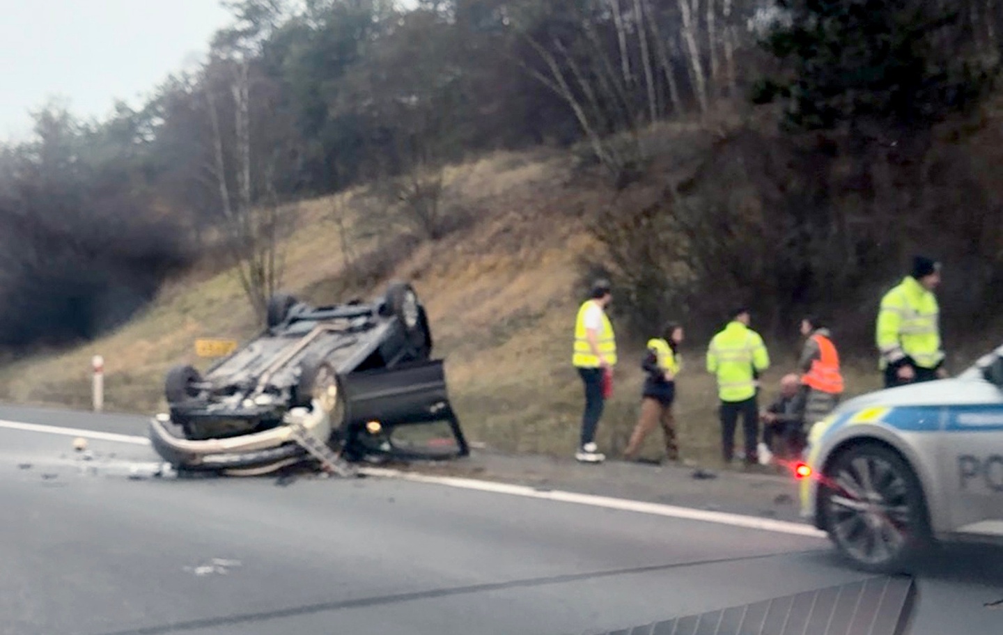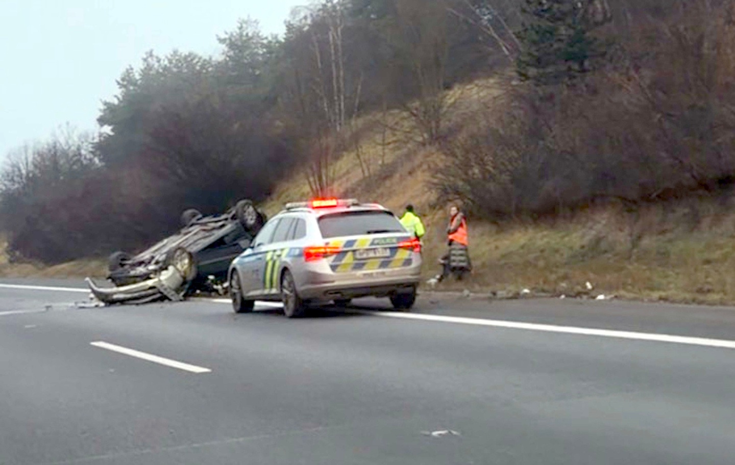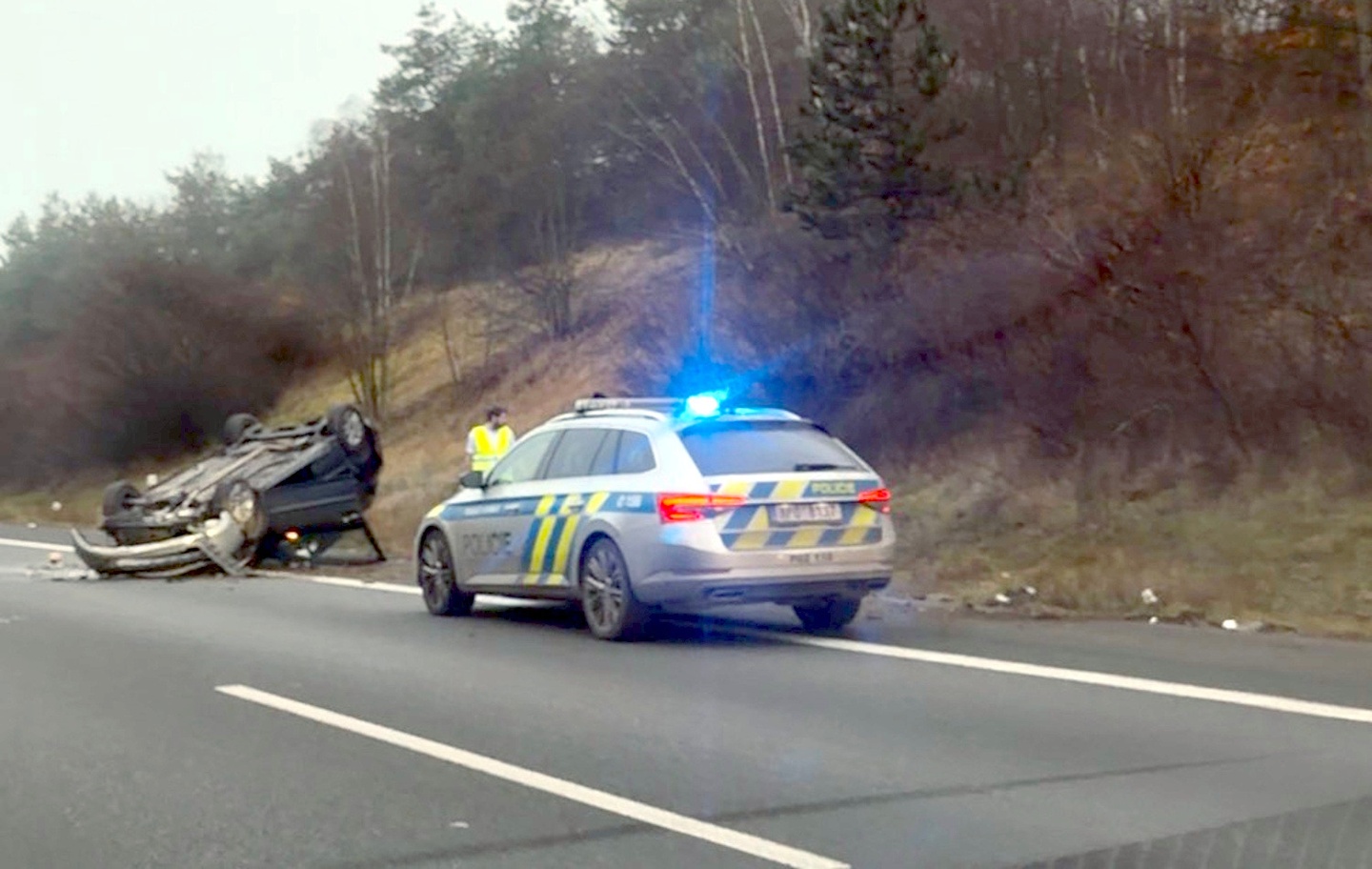 Dnes krátce před čtvrtou hodinou odpoledne došlo na 45. kilometru dálnice D5 ve směru z Prahy na Plzeň k dopravní nehodě, během které se osobní vozidlo značky Peugeot po vyjetí z dálnice převrátilo.