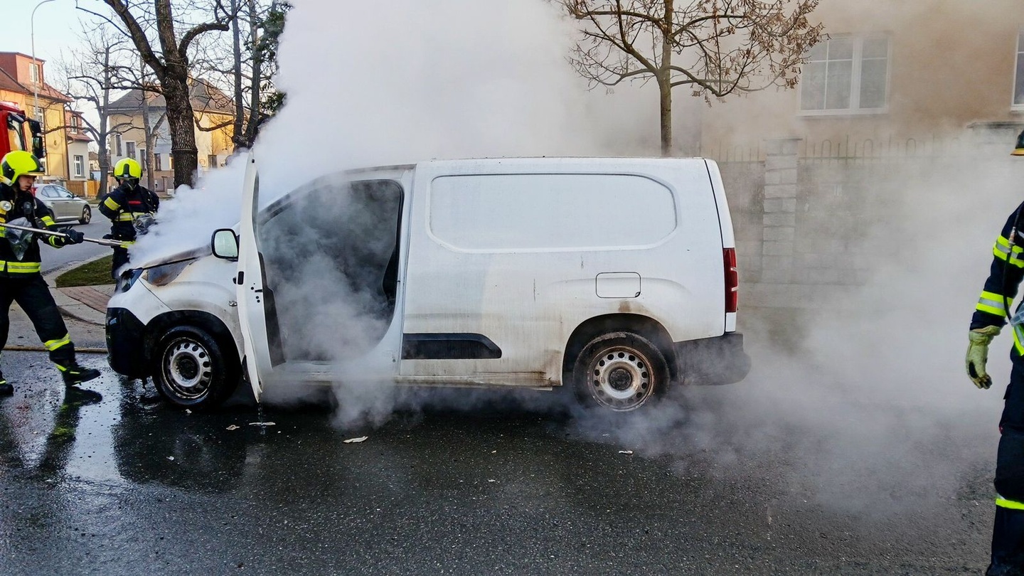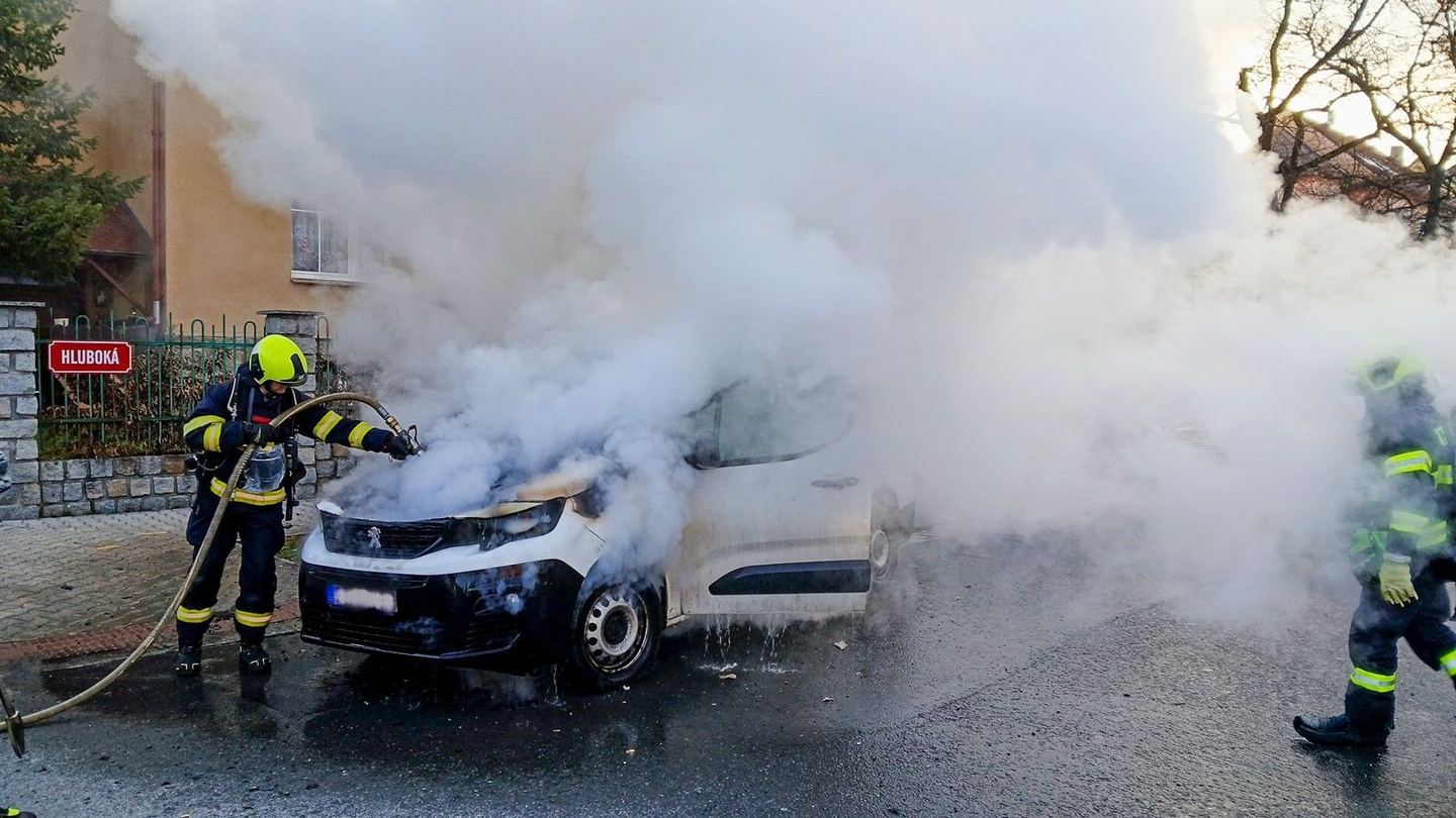 Dnes krátce před osmou hodinou ráno vyjížděli hasiči na křižovatku Jasanové a Hluboké ulice v Plzni k nahlášenému požáru dodávky značky Peugeot.