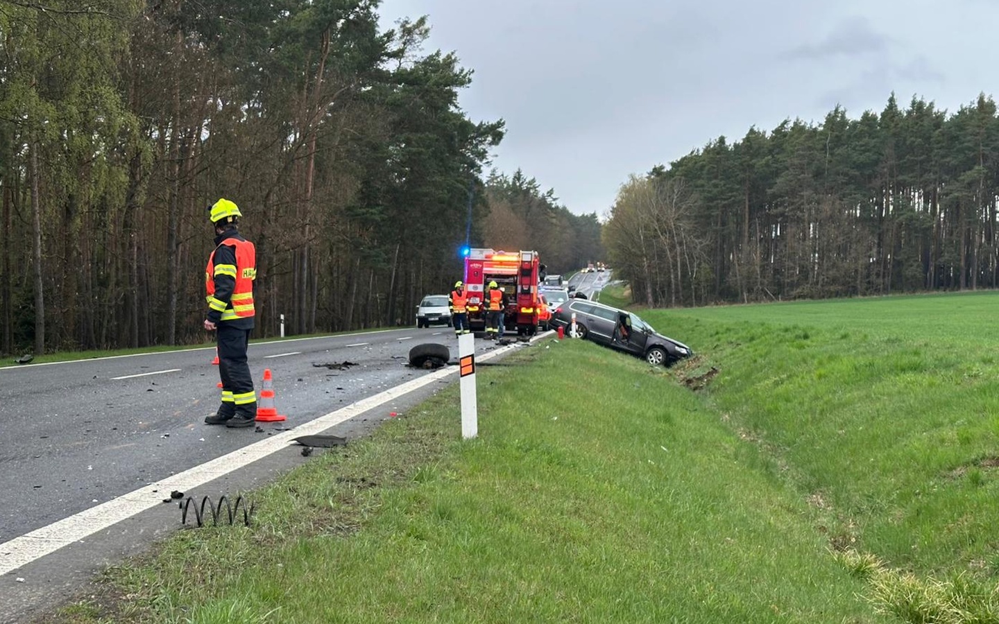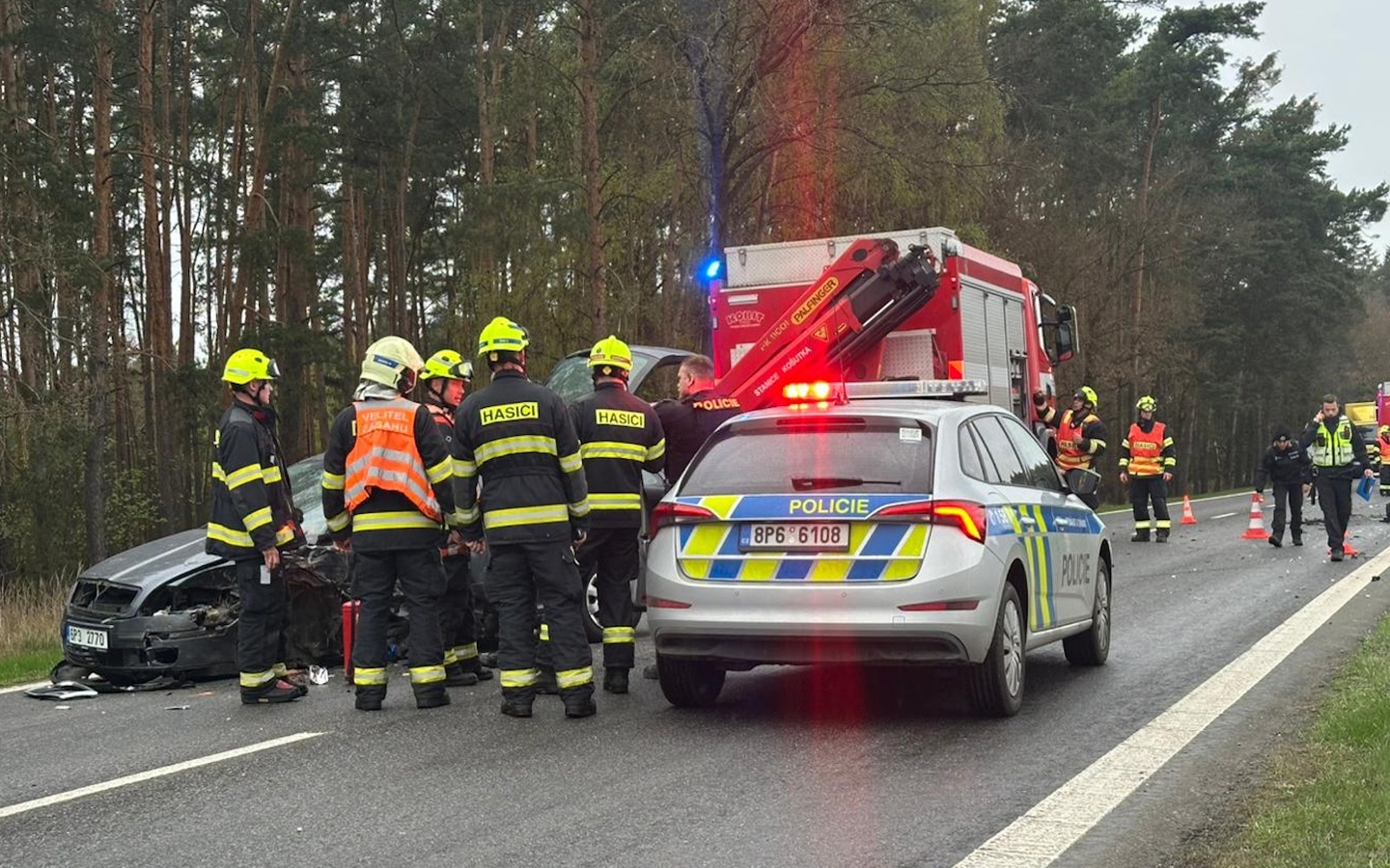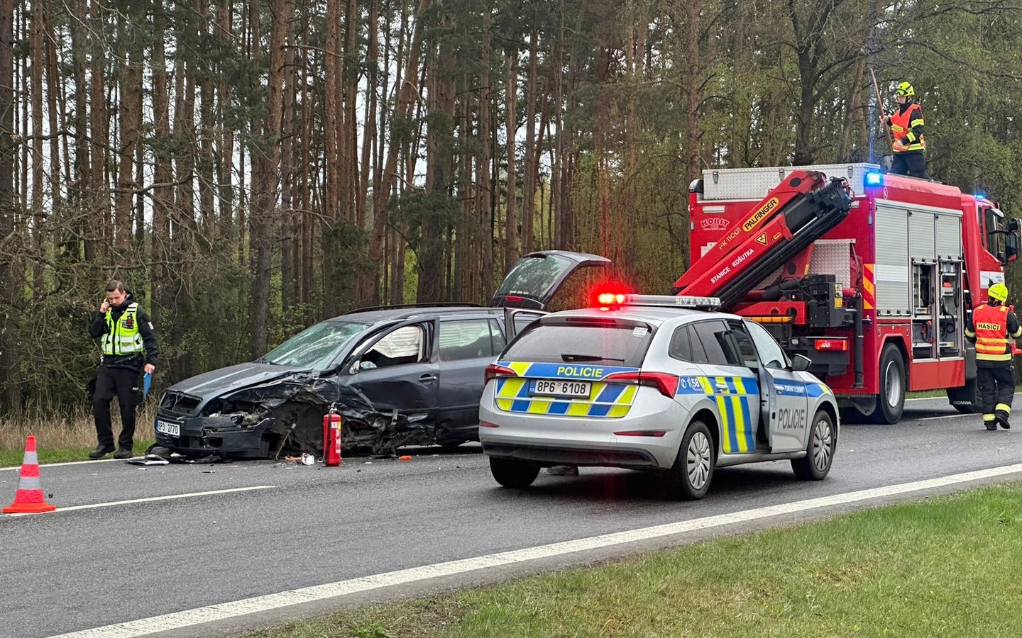 Hasiči po příjezdu zajistili místo nehody, provedli protipožární opatření a do příjezdu policistů zahájili pátrání po osobě v lese, kam měl řidič podle svědků utéct.