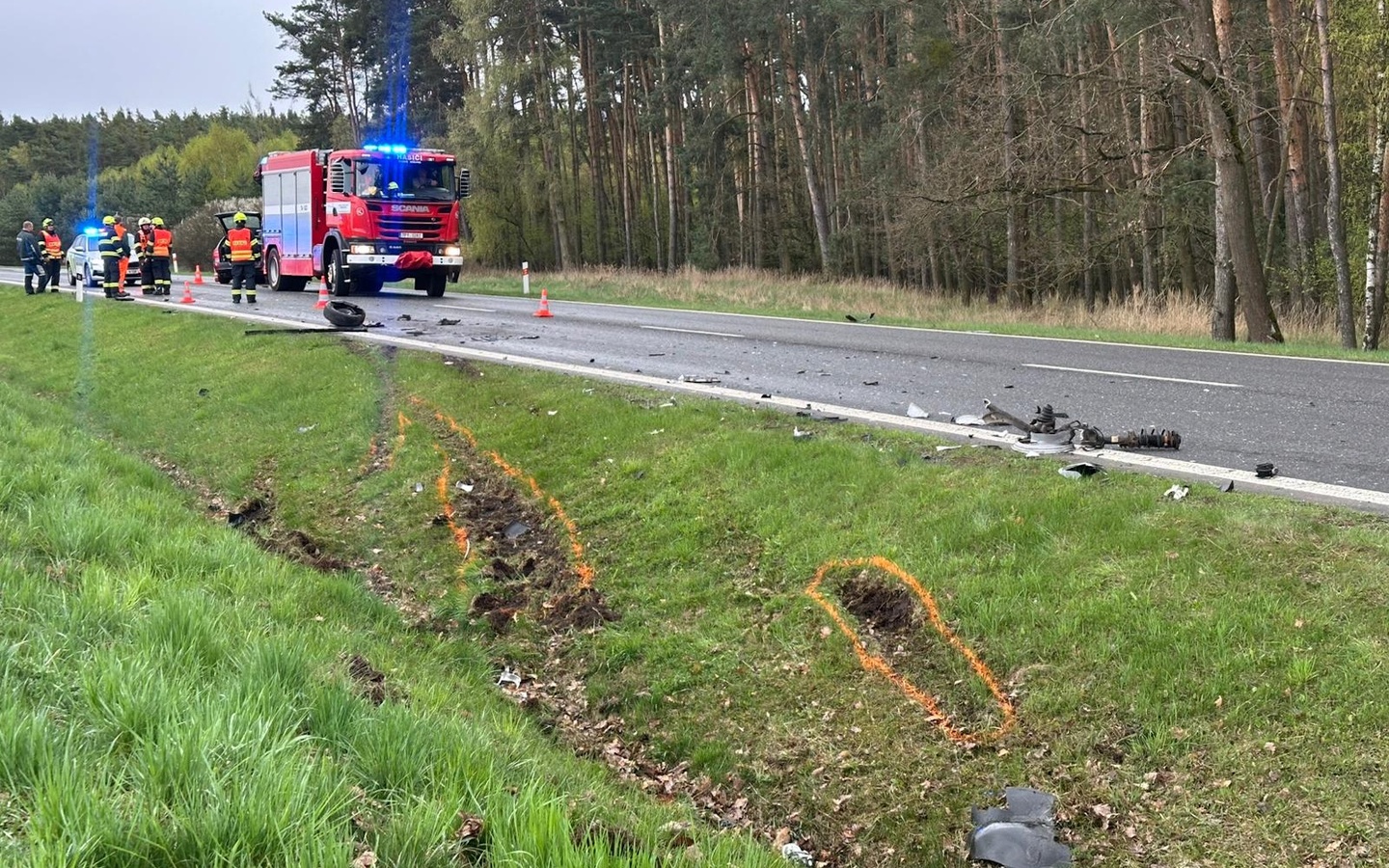 Podle informací přímo z místa došlo k nehodě tak, že řidič Octavie vyjel do protisměru, kde se střetl s protijedoucím Volkswagenem, který byl po nárazu odražen do silničního příkopu. Náraz byl natolik silný, že oběma vozidlům utrhl levá přední kola. Viník nehody po střetu vyběhl z vozu, nijak se nestaral o posádku protijedoucího vozu, podle svědků si pouze vzal nějaké věci z kufru a utekl do lesa.