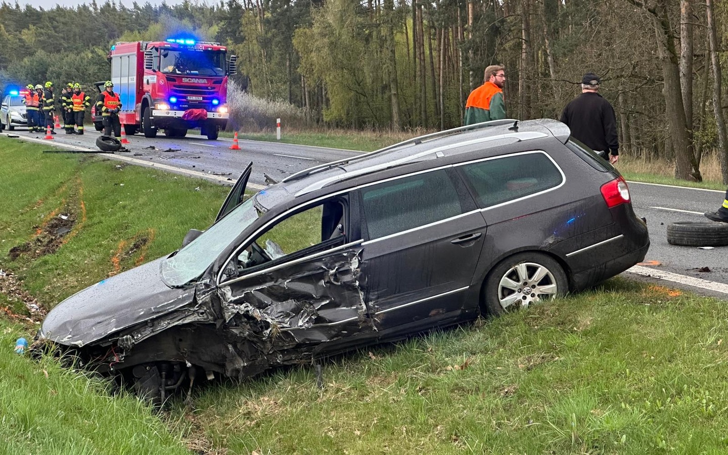 Záchranáři si mezitím převzali do péče spolujezdkyni z Volkswagenu, kterou naštěstí pouze s lehčím zraněním transportovali do nemocnice.