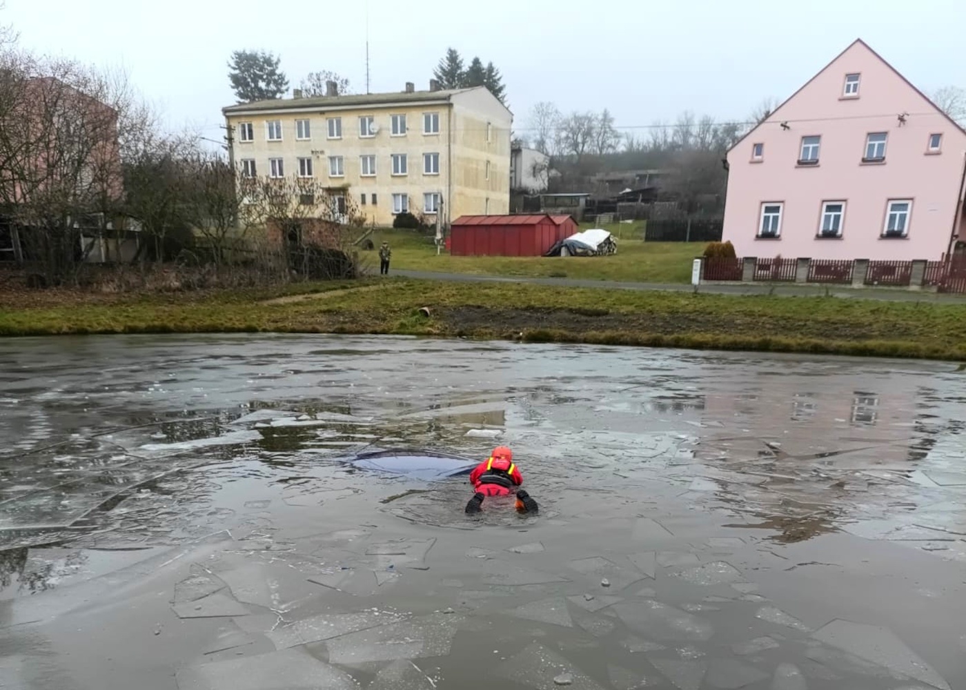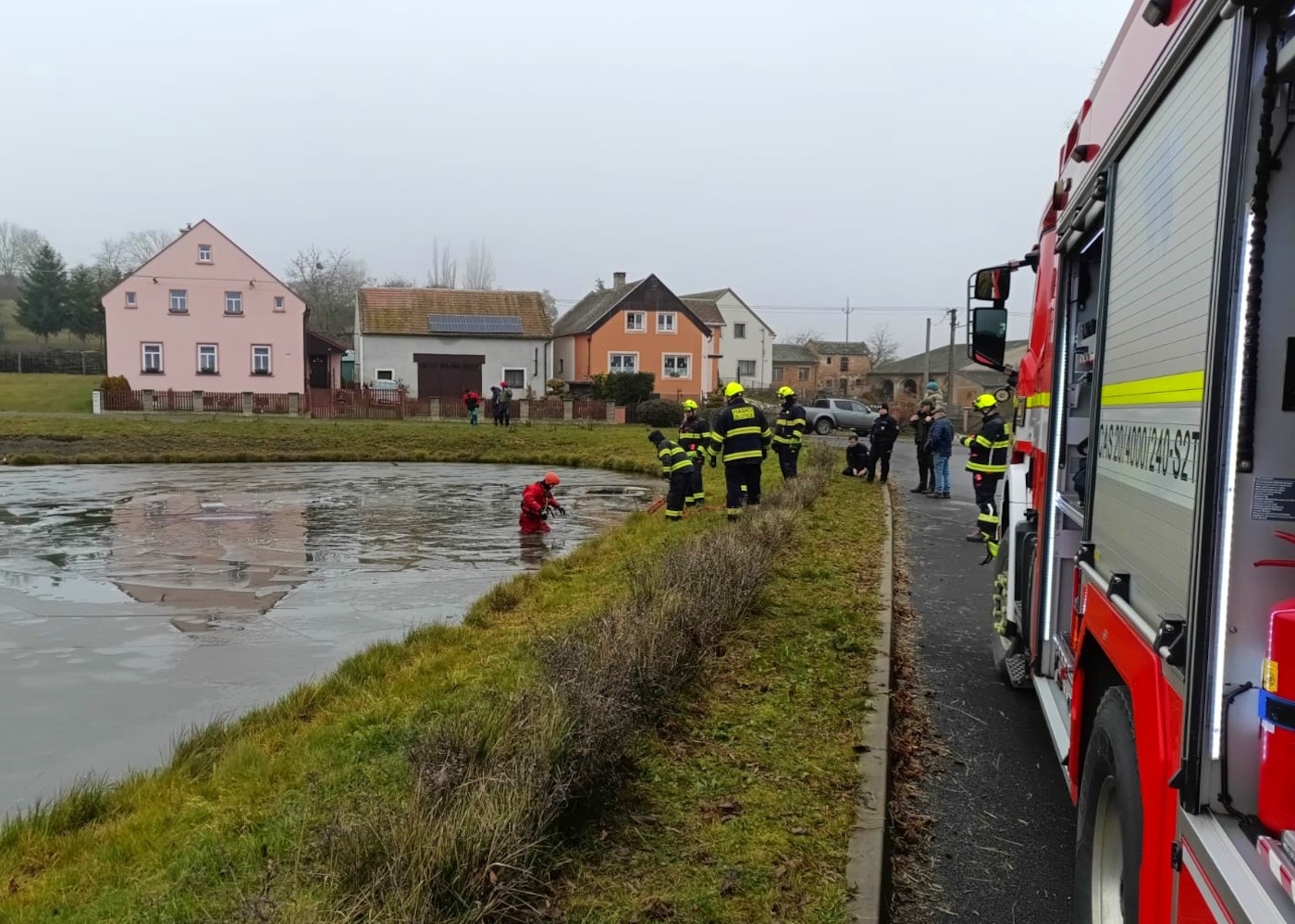 Dnes kolem poledne došlo v Pšově u Žlutic k dopravní nehodě, během které osobní vozidlo sjelo do rybníka. Vůz se začal rychle potápět a starší řidičce přispěchal na pomoc svědek, který ji z ledové vody vytáhl doslova na poslední chvíli. Auto se totiž krátce poté potopilo až po střechu.