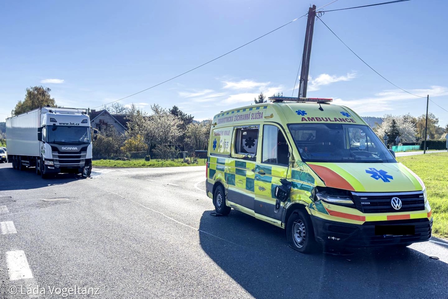 Střet sanitky transportující pacienta s nákladním vozem