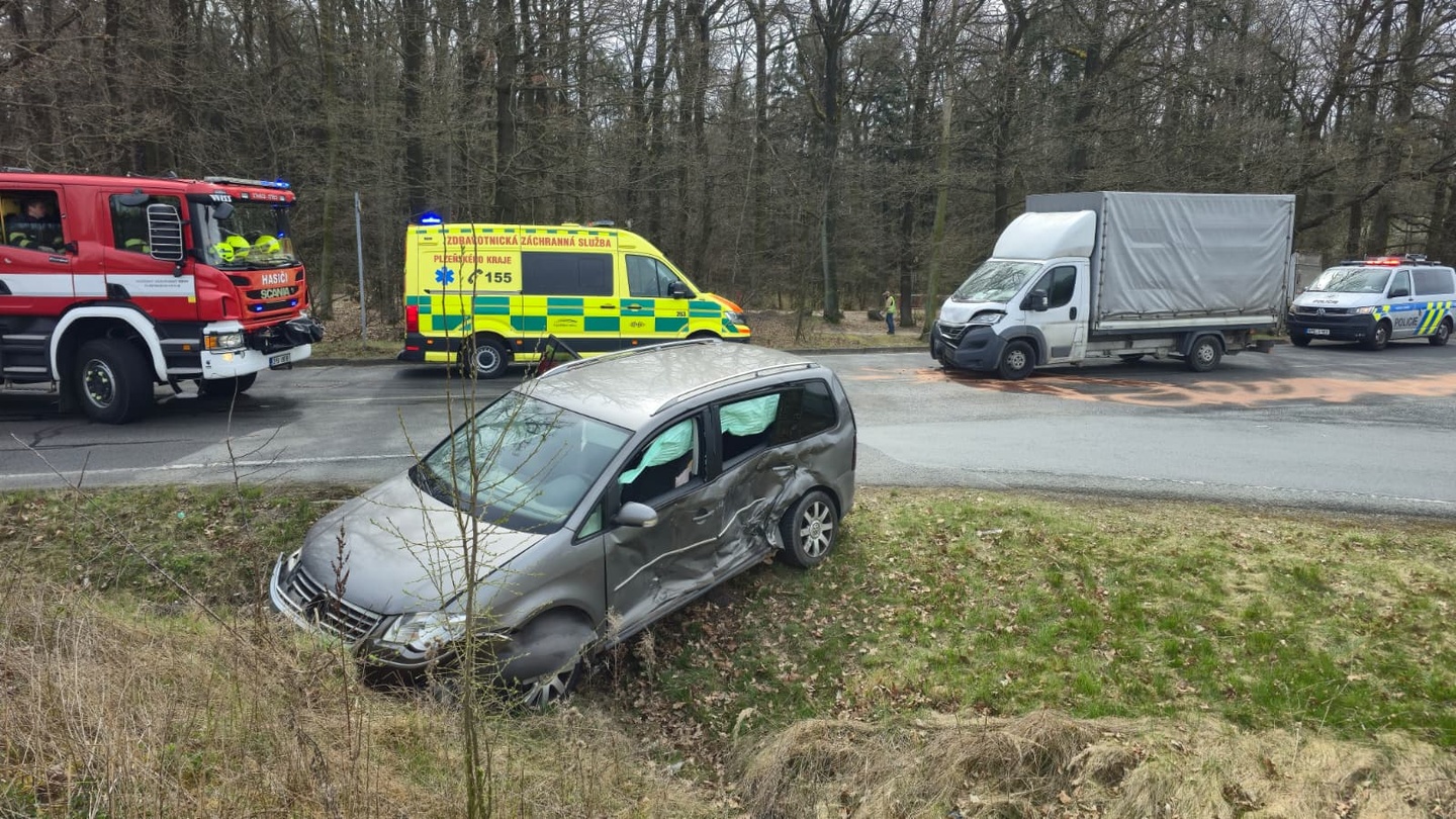 Ke druhé nehodě došlo po půl dvanácté v Plzni na křižovatce Nákupní ulice a silnice vedoucí z Božkova na Červený Hrádek, kde se střetl osobní vůz Volkswagen Touran s dodávkou.