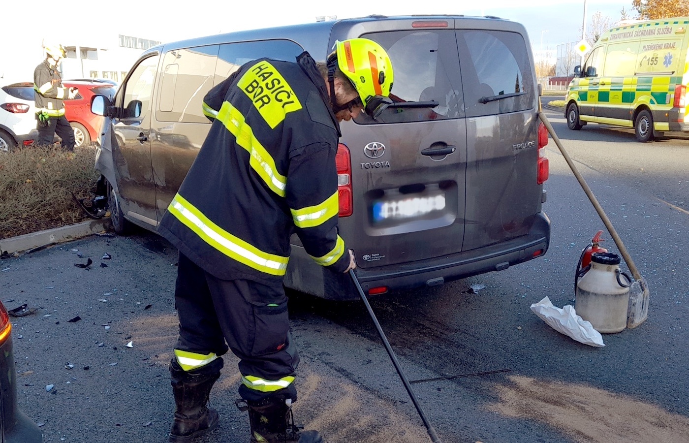 Dnes ráno došlo v průmyslové zóně CTPark Bor na Tachovsku k dopraní nehodě, během které se střetlo osobní vozidlo značky Volkswagen s dodávkou značky Toyota, která přepravovala zaměstnance do práce. Z místa bylo hlášeno možné zranění několika osob, takže k nehodě okamžitě vyjely všechny záchranné složky.
