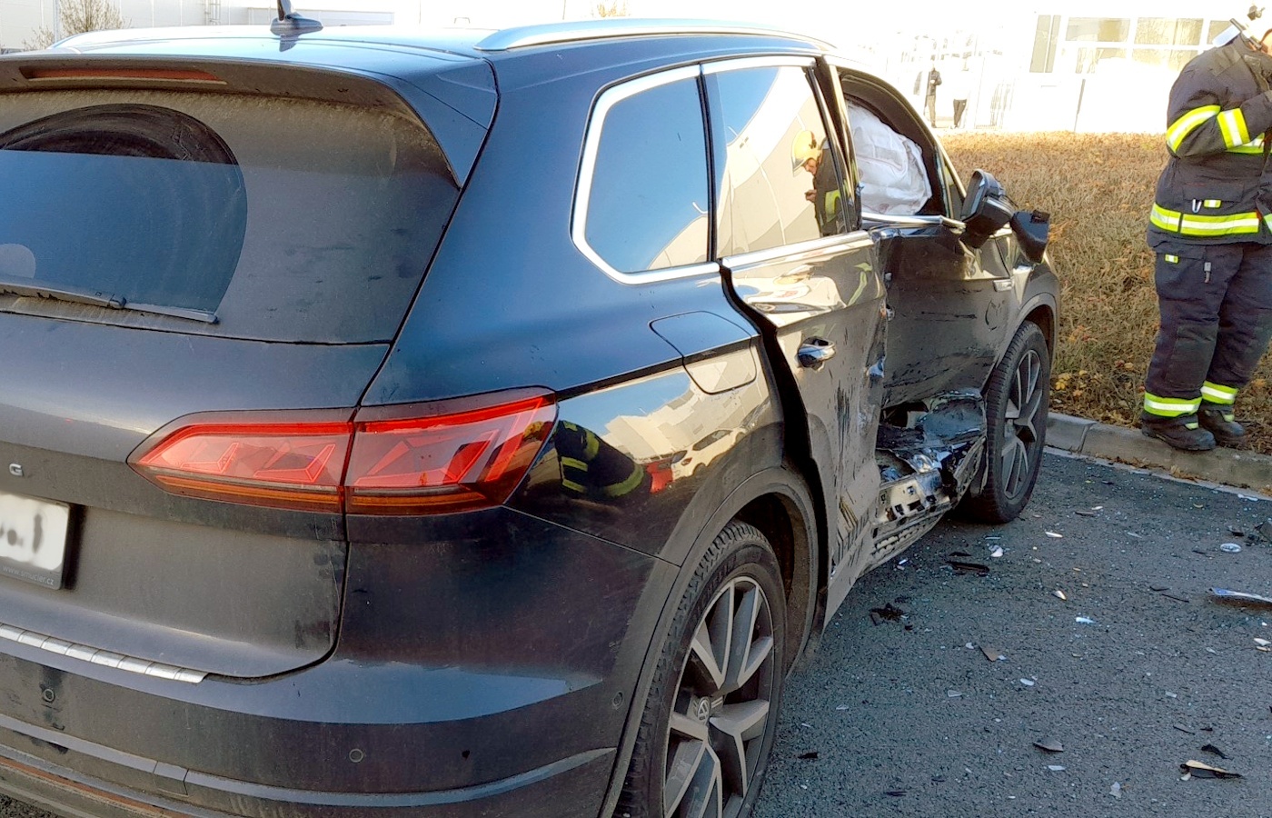 "Řidič vozidla tovární značky Volkswagen Tiguan narozený v roce 1960 jel v průmyslovém areálu v obci Nová Hospoda po vedlejší pozemní komunikaci. Podle dosud zjištěných skutečností zřejmě na křižovatce nedal přednost vozidlu Toyota, které jelo po hlavní pozemní komunikaci a došlo ke střetu.