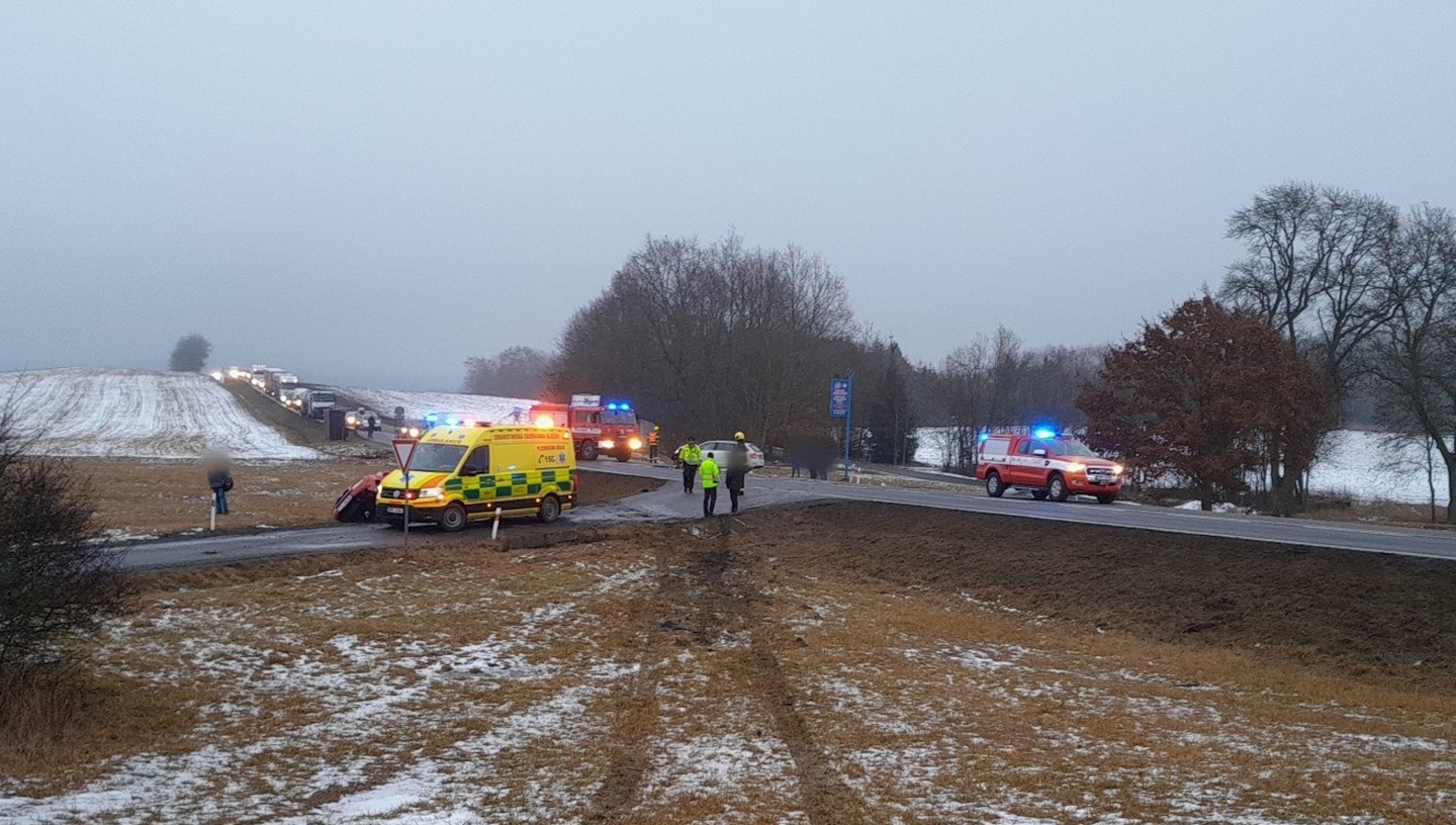 Z místa bylo hlášeno zranění a zaklínění ženy, takže k nehodě okamžitě vyjely všechny záchranné složky.
