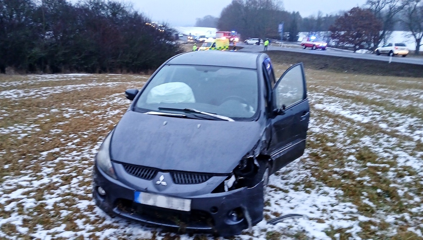 Následně bylo vozidlo Mitshubishi odraženo na automobil Škoda Fabia a obě vozidla po nárazu skončila mimo komunikaci.