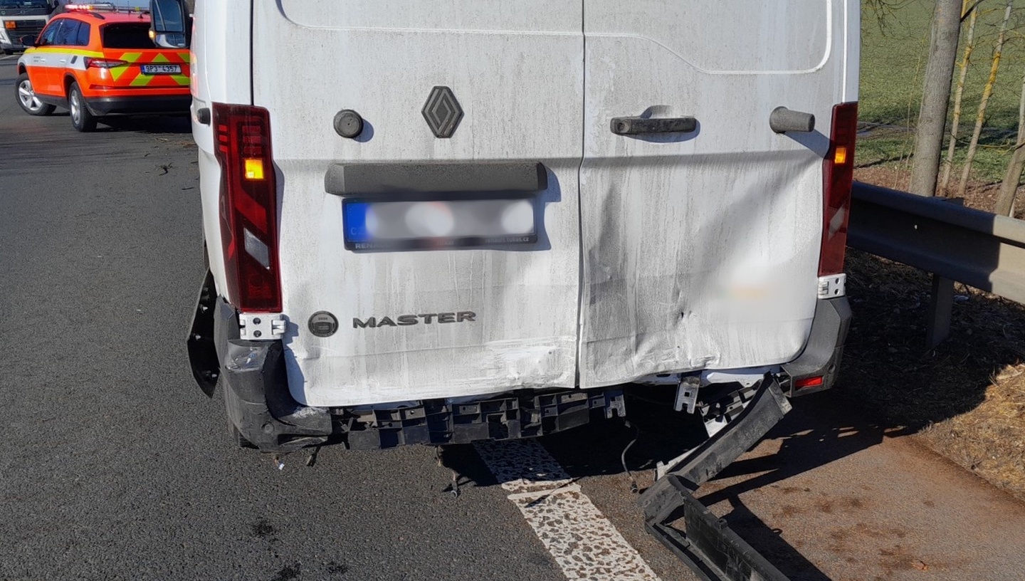Jen o pul hodiny později došlo k další nehodě a tentokrát na silnici z Plzně na Karlovy Vary na úrovni Chotíkova, kde osobní vůz zezadu narazil do dodávky.