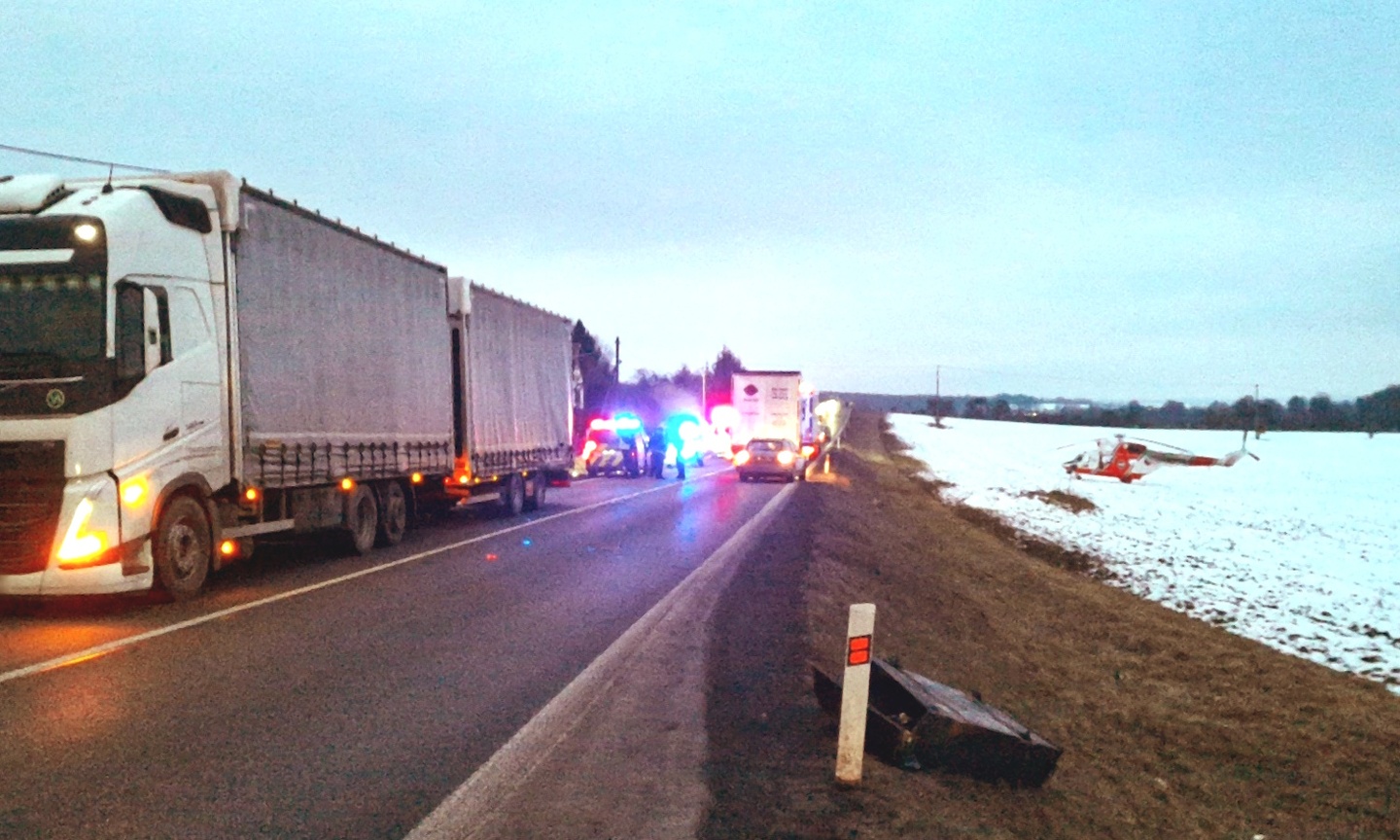 Dnes kolem sedmé hodiny ráno došlo na silnici č. 26 vedoucí z Plzně do Domažlic, mezi Horšovským Týnem a Semošicemi, k tragické dopravní nehodě. Střetla se zde tři osobní vozidla s nákladním autem.