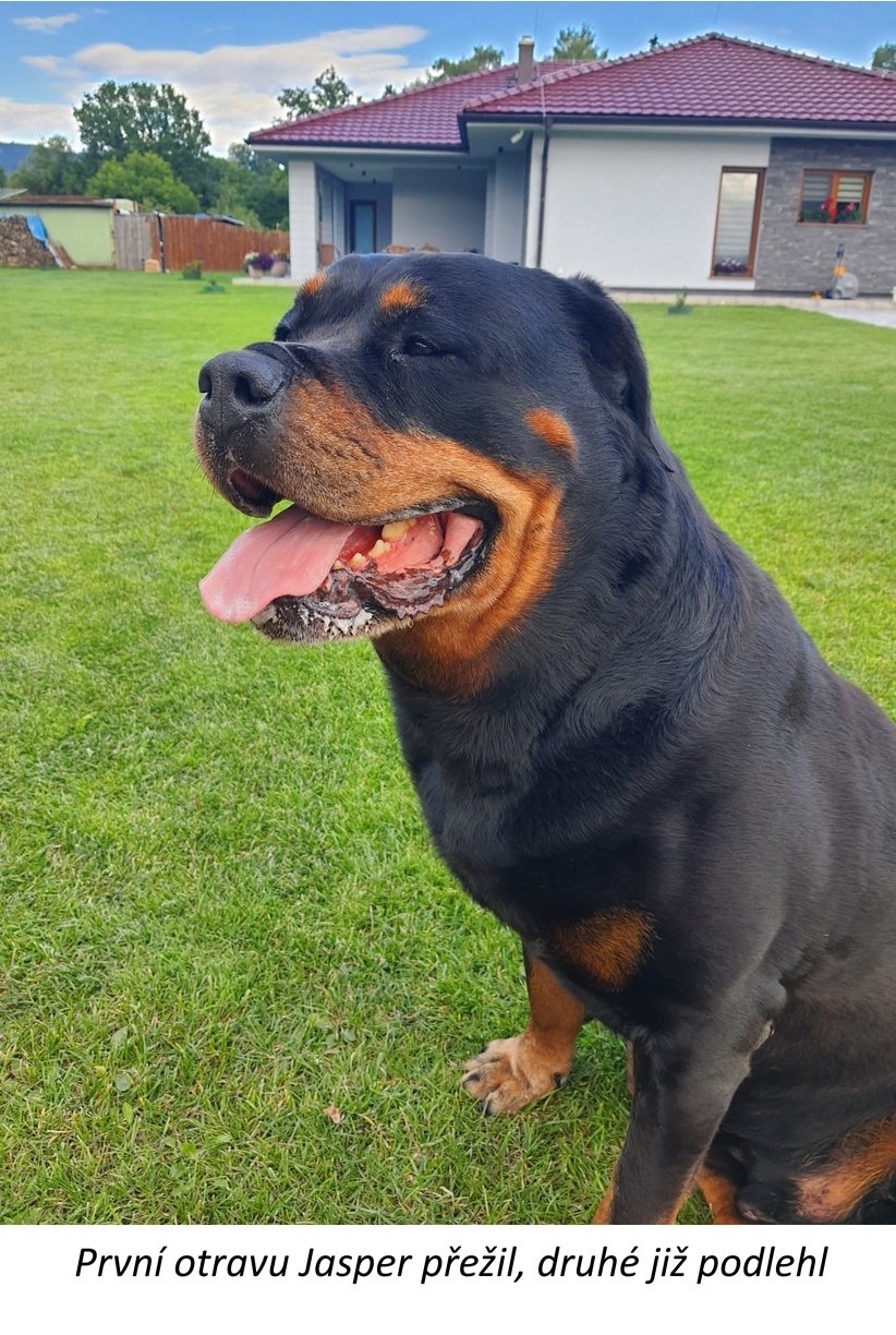 Jedním z postižených je dlouholetý chovatel rotvajlerů, kterému travič zabil psa přímo na vlastní zahradě. "Psy chováme už šestatřicet let, konkrétně rotvajlery. Ale takovou bezmoc a zoufalství jsme nezažili nikdy. Někdy zjara minulého roku jsem našel našeho rotvajlera Jaspera na zahradě ve strašném stavu, měl bolesti, pěnil. Tehdy se ho ještě podařilo zachránit. Našli jsme u toho hroudu hlíny s mletým masem a granulemi jedu na potkany. Všechno jsem oznámil policii, ale nic se nezjistilo," popsal nám chovatel.