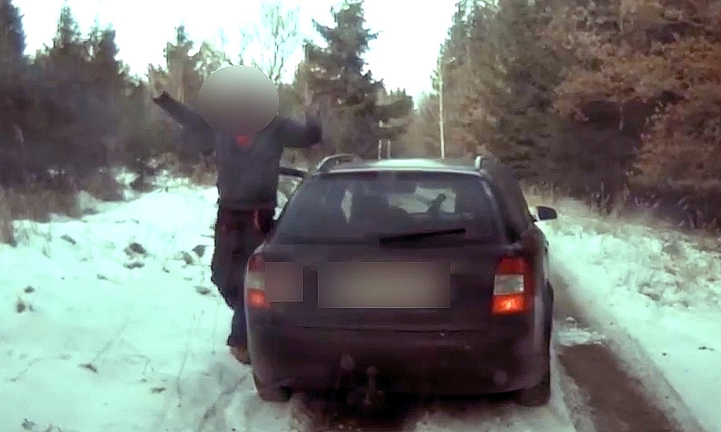 Řidiči se však podařilo znovu rozjet a vjet na lesní cestu, kde málem havaroval. Poté s vozidlem zastavil a byl pod hrozbou namířené služební zbraně na místě zadržen. Ve vozidle s ním cestovala také sedmačtyřicetiletá spolujezdkyně, která byla taktéž omezena na osobní svobodě.