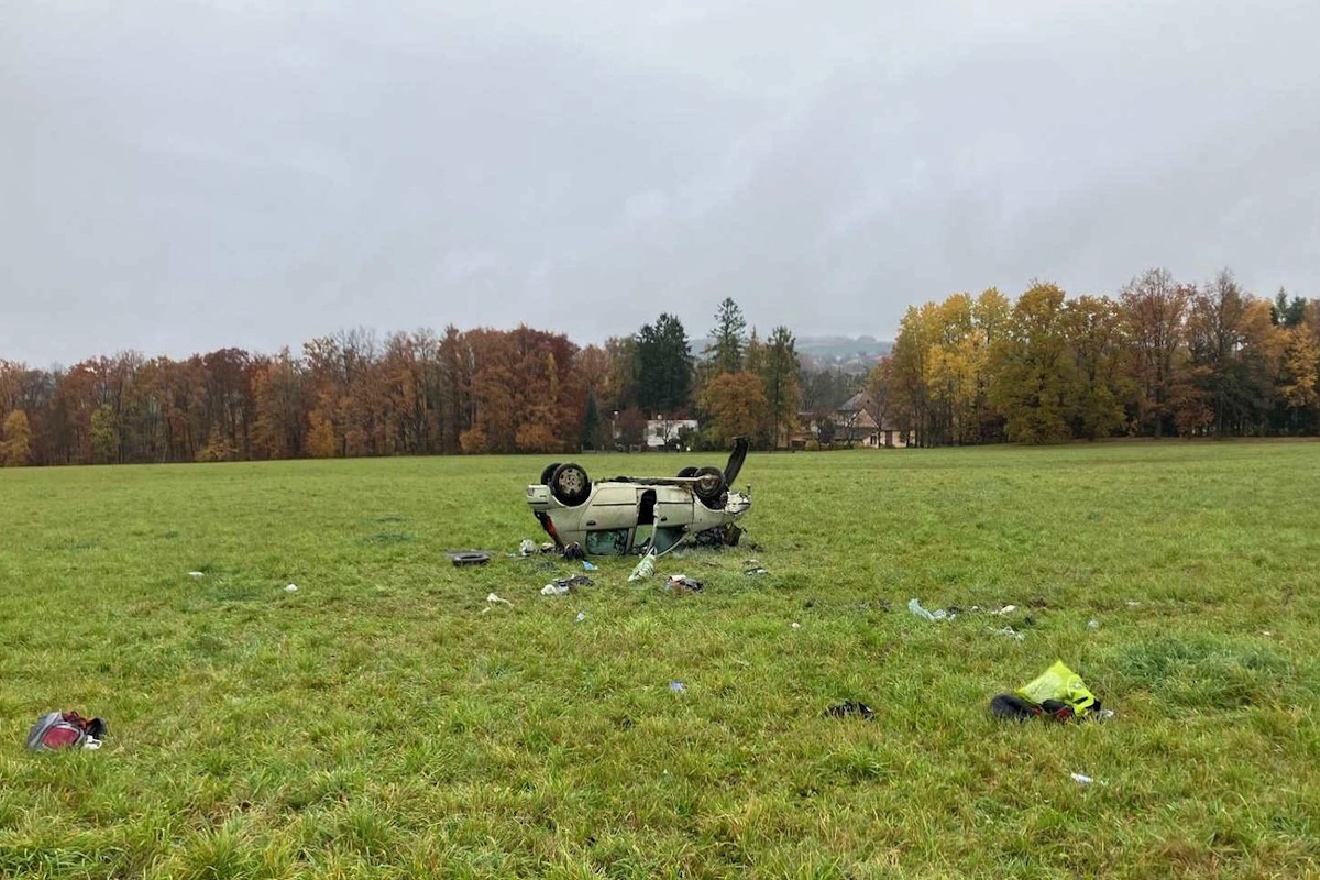 Dnes před půl druhou odpoledne došlo na silnici ze Spáleného Poříčí na Hořehledy k dopravní nehodě, během které osobní vůz vyjel ze silnice a na louce se několikrát převrátil přes střechu. "Jel jako naprostý šílenec, chvíli před nehodou mě předjížděl, ještě jsem si říkal, že to někde vyválí, a o pár kilometrů dál už vidím, že je na louce na střeše a zrovna přijíždějí hasiči," popsal nám svědek.
