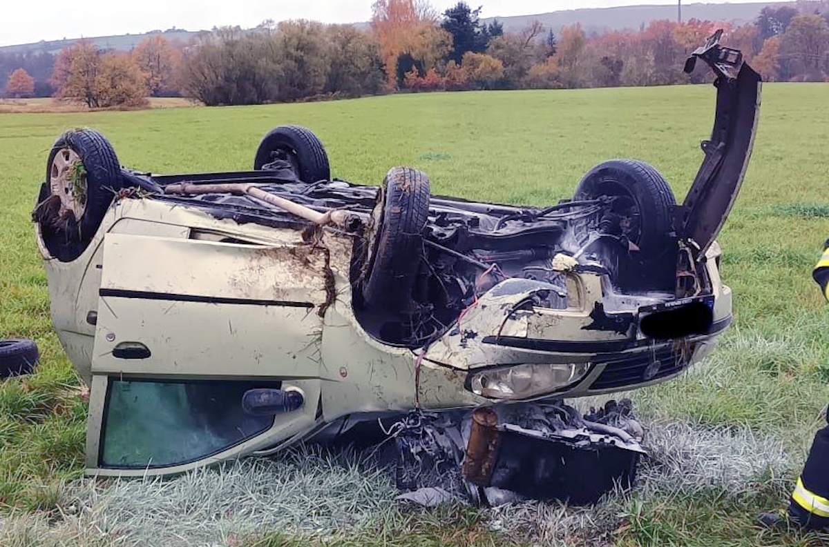 "Řidič narozený v roce 1984 jel s vozidlem Fiat po silnici I/19 ve směru na Spálené Poříčí a zhruba půl kilometru před ním na rovném úseku vyjel s vozidlem mimo komunikaci a skončil s ním na střeše.