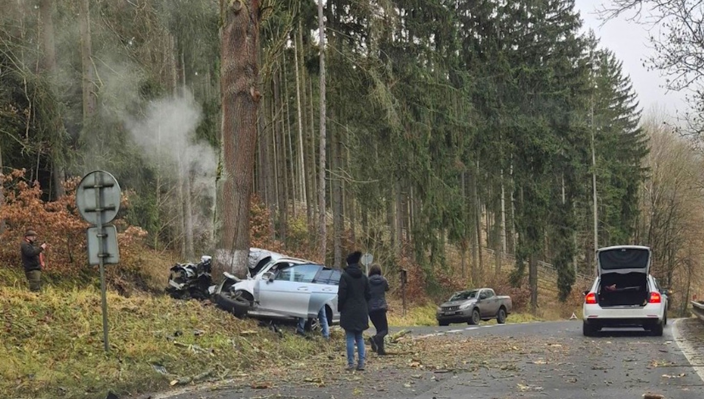 Dnes kolem půl deváté ráno došlo na silnici č. 222 u Šemnice, což je obec ležící zhruba sedm kilometrů východně od Karlových Varů, k velmi vážné dopravní nehodě, během které vozidlo Mercedes po vyjetí ze silnice čelně narazilo do stromu.