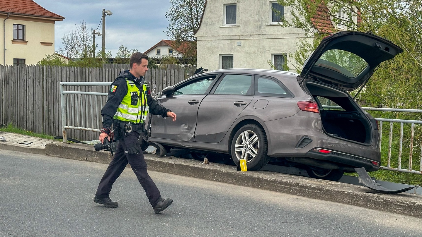 Dnes krátce před čtvrtou hodinou odpoledne došlo v Revoluční ulici v Heřmanově Huti k dopravní nehodě, během které osobní vozidlo značky Hyundai po vyjetí ze silnice skončilo zápasové mezi zábradlím mostku.
