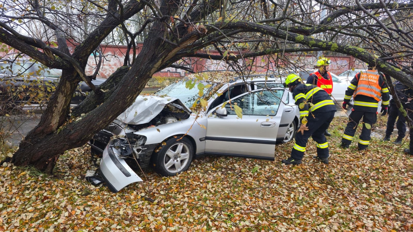 Dnes krátce po druhé hodině odpoledne došlo v Lobezské ulici v Plzni na Slovanech k dopravní nehodě, během které osobní vůz značky Volvo po vyjetí ze silnice čelně narazil do stromu.