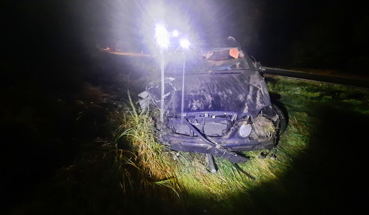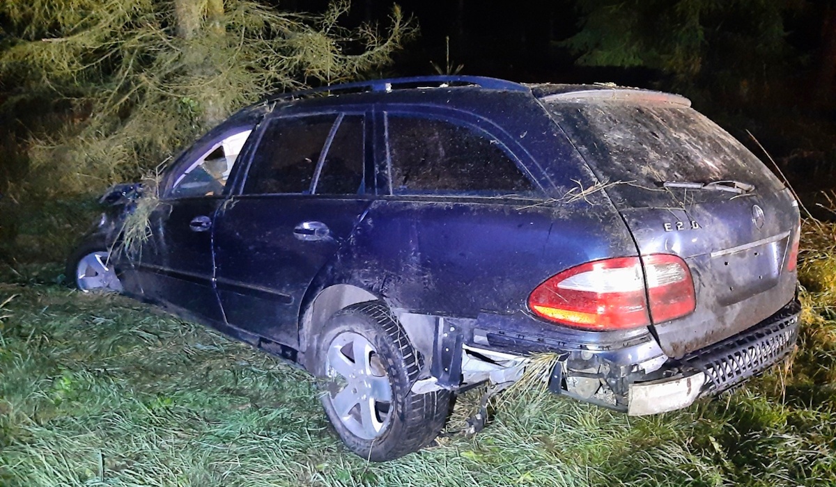 "Osmatřicetiletý muž jedoucí s osobním vozem značky Mercedes-Benz po projetí pravotočivé zatáčky nezvládl řízení a sjel ze silnice.